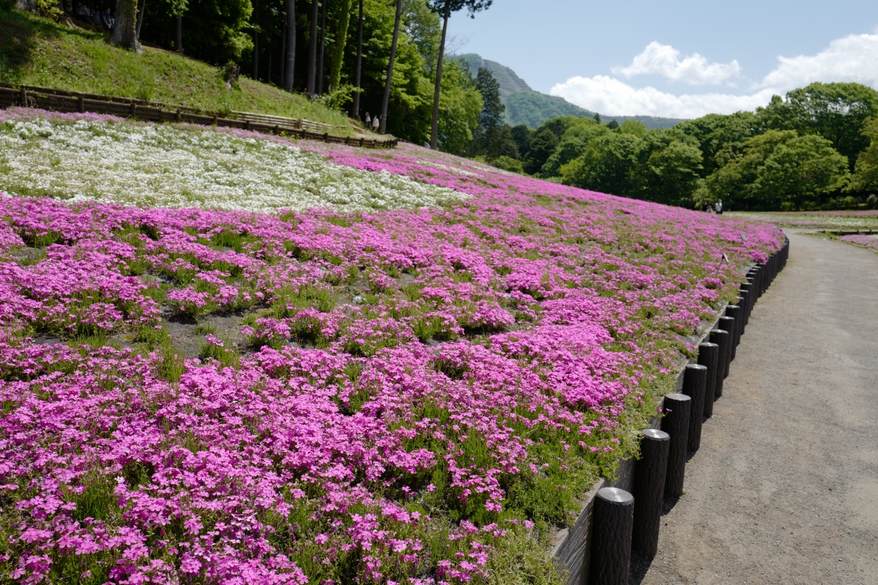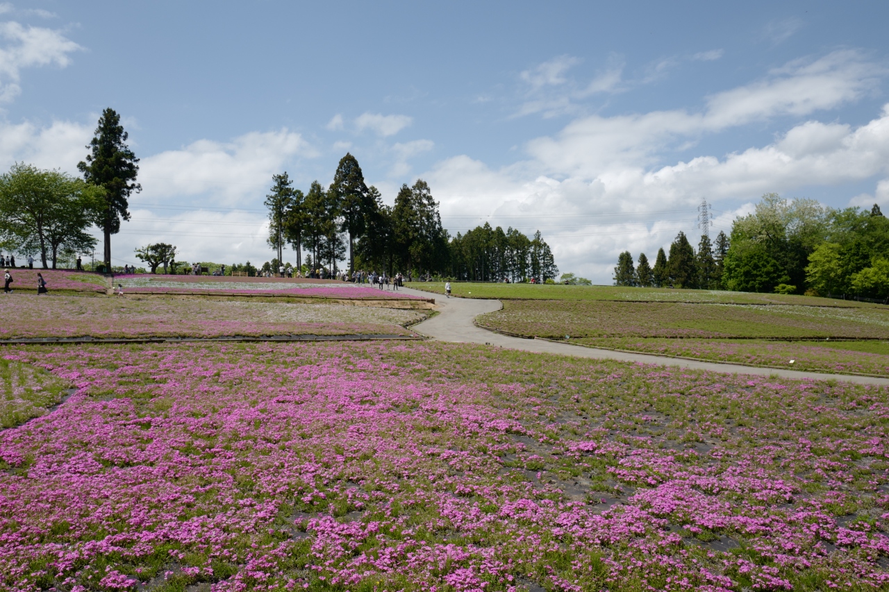 南北に伸びる公園は両エリアで全く違う雰囲気を見せており、南側は有名な「芝桜」の鑑賞エリアで、まるで北海道に来てしまったかのような開放感が最高!見頃を過ぎたもののある程度残っていた芝桜達と新緑の景色がとても綺麗で、癒されました。