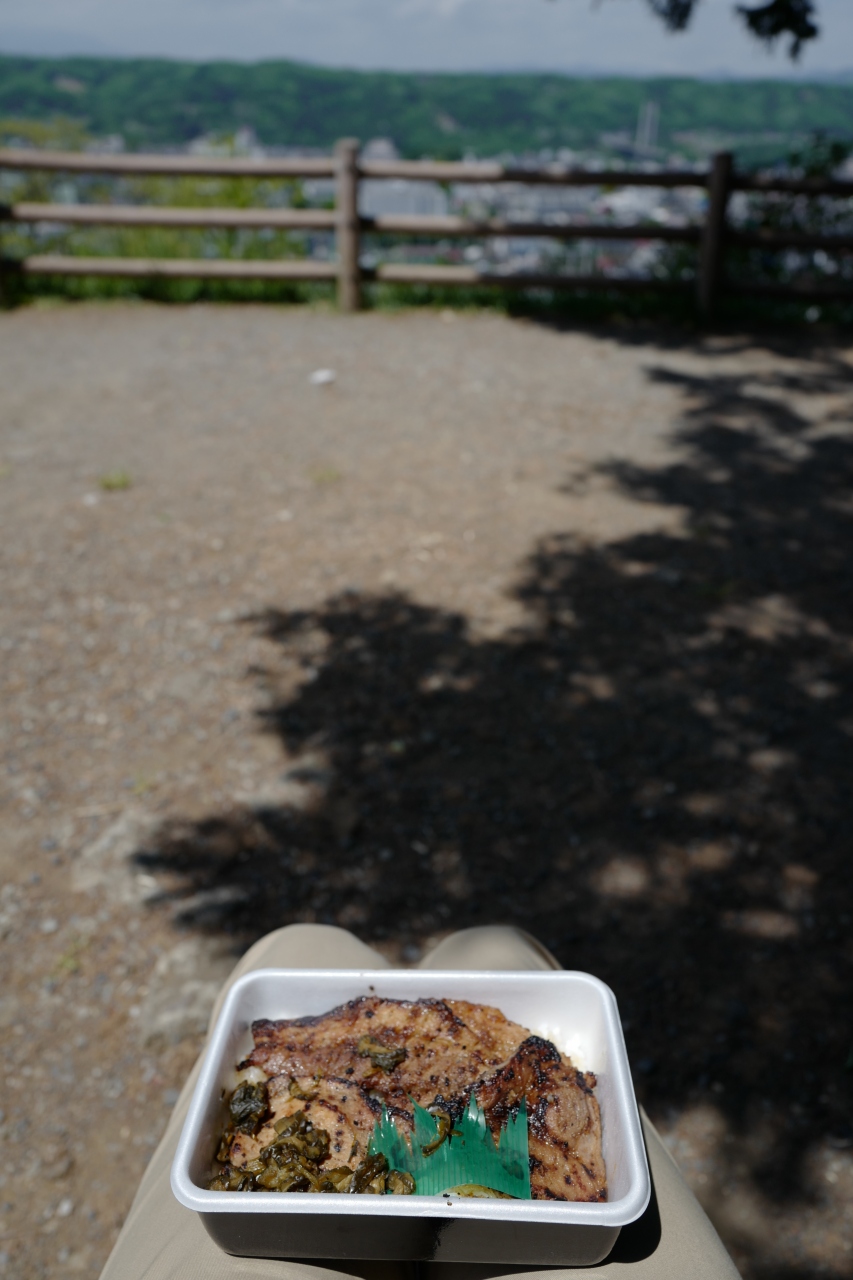 そしてテイクアウトした豚丼は、この店から歩いて10分ほどの「羊山公園」で、秩父の街並みを望みながらいただきました。