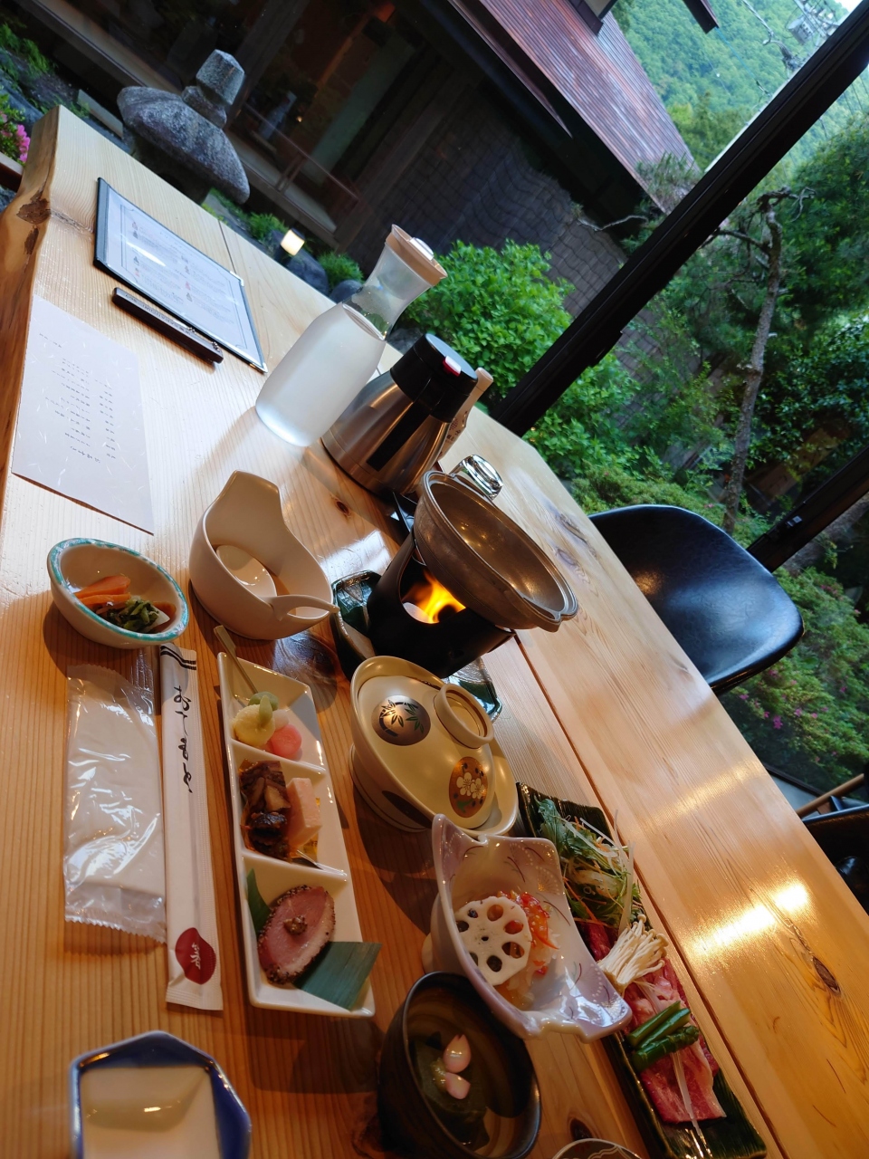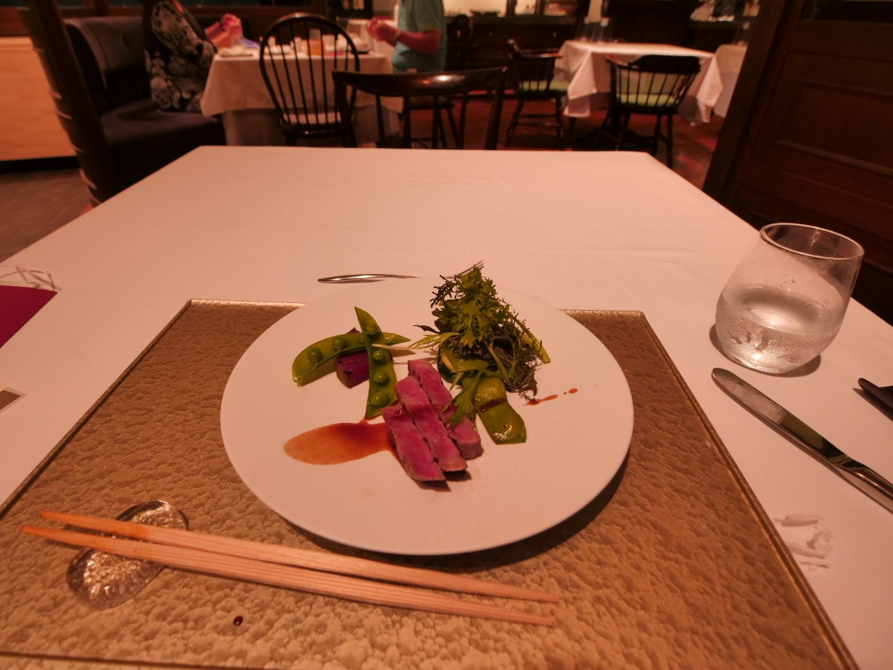 夕食はコース方式でカクテルと一緒に堪能。信州プレミアム牛の肉など、とても美味しい料理ばかりを落ち着いた空間で頂け文句なし。お腹が一杯になってしまい、最後の2品を食べることができなかったことが残念でした。