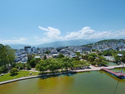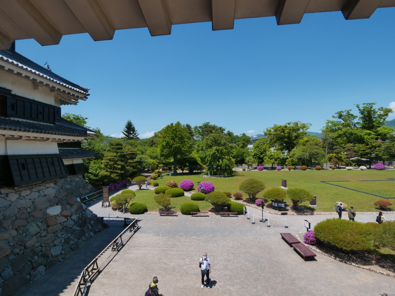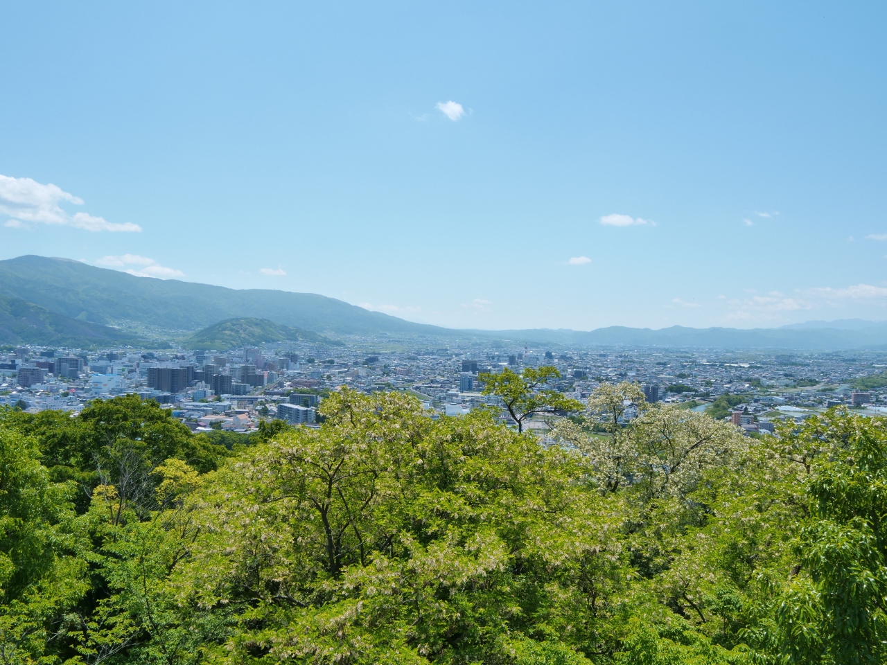 展望台上からは松本の市街地はもちろん、アルプスの山々なども楽しめてとても良い景色です。ただベンチがないので長居は厳しい感じ。