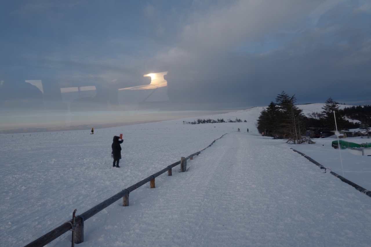 そして当日は宿泊者が多く、3部に分かれた雪上車の時間指定もくじ引きで決めるスタイルになっていました。その結果私は9番目と、(欠番があったので実質5~6番目くらい)微妙な順番だったものの先客たちが結構各時間帯に分散していたお陰で、順番が回ってきたタイミングで全時間帯が指定でき、希望の時間で予約。大雪原に沈む、とっても綺麗な夕陽を見れて素晴らしい体験でした。