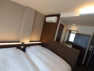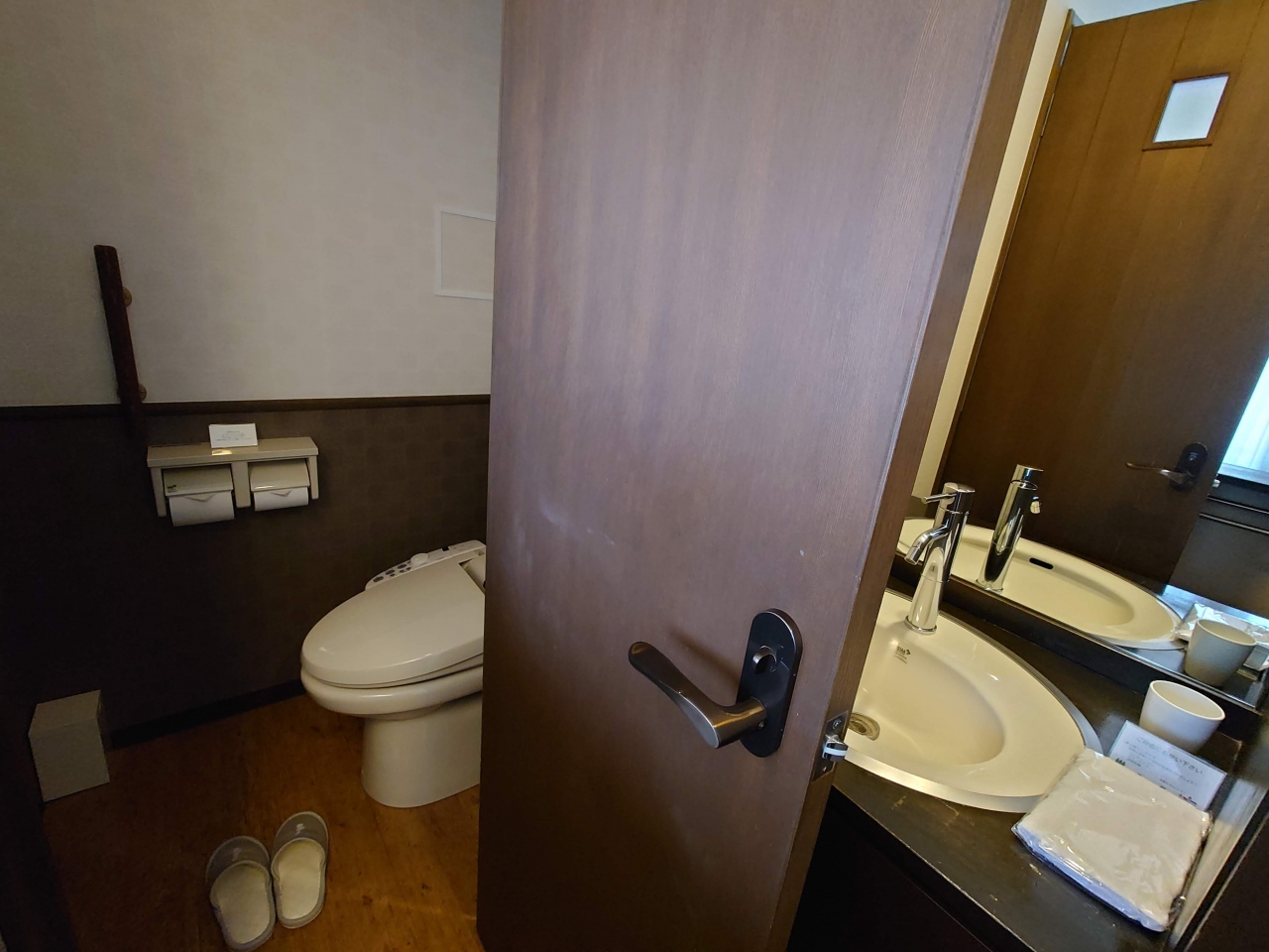 今回利用した部屋は2階の洋室「AYA」。暖色系の照明が照らす上品な雰囲気と、充実している部屋設備は快適そのもの。水回り奥には源泉掛け流しの温泉もあり、程よい湯加減でとっても気持ち良く入れました。