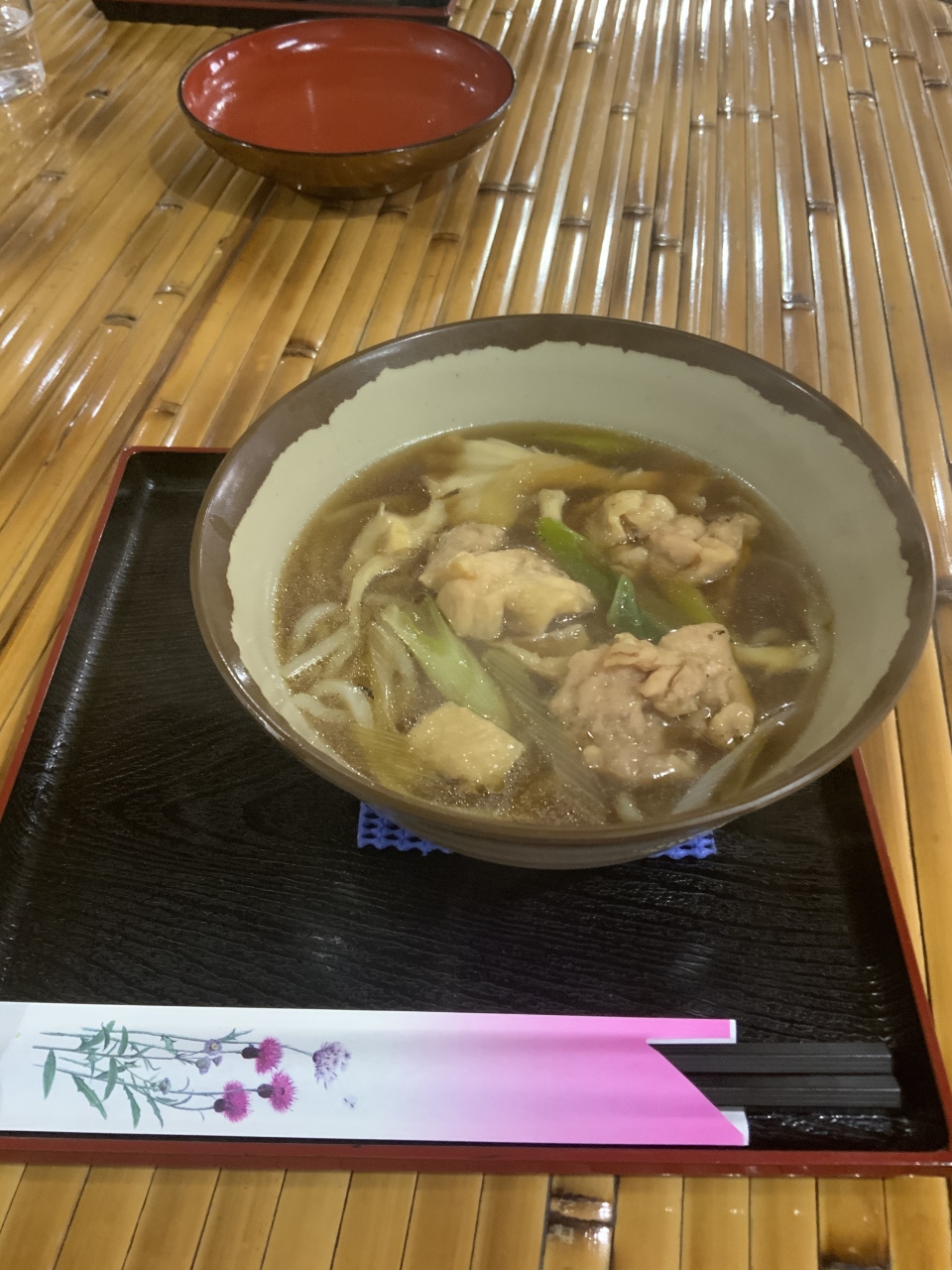 メニューはうどんそばやゆば丼など、簡単なメニューが中心なので豪華な食事を期待する方には不向き。今回食べた鶏うどんは鶏肉がごろごろ入っていて、稲庭うどんのような細麺が特徴的でした。駅近くなので時間がない時にささっと食事するのにもぴったりなお店です。- 旅行時期
