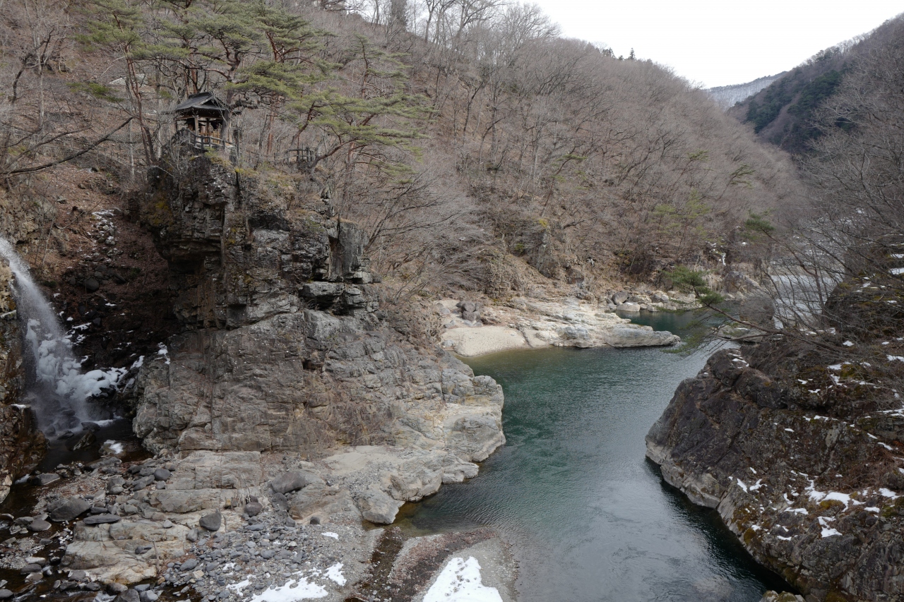 - 野岩鉄道龍王峡駅から歩いてすぐ。景勝地としては文句なしのアクセスでしょう。