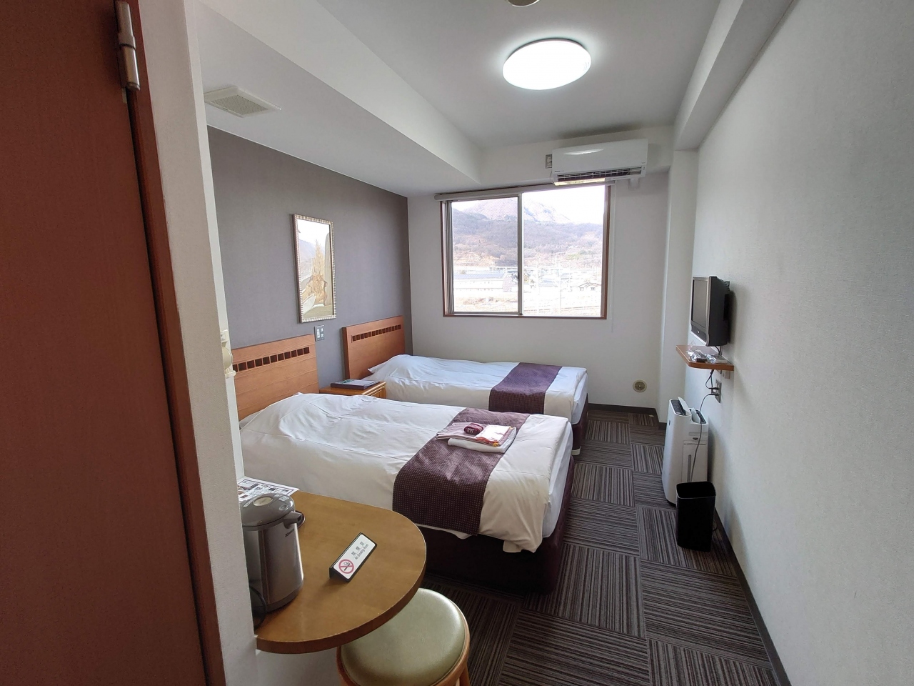 急なカーブが続く山道をひた走る送迎バスに揺られること1時間20分余りで、ふる里館に到着。明るく元気の良いスタッフさん達による歓迎を受け、施設の説明等を受けて部屋へチェックイン。宿泊したツインルームはとっても綺麗でウォシュレットトイレまで部屋に付いており、館内にはエレベーターにフリーWi-Fiもあってもう山上の宿とは思えないような充実した設備です。