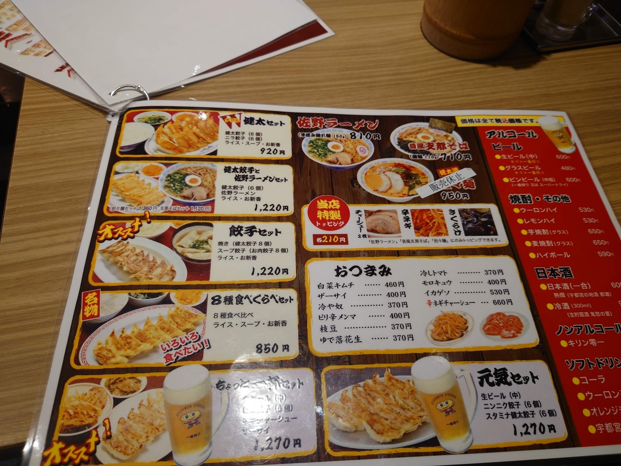 メニューは名物の餃子とラーメンがメインで、私は850円の「8種食べ比べセット」を注文。
