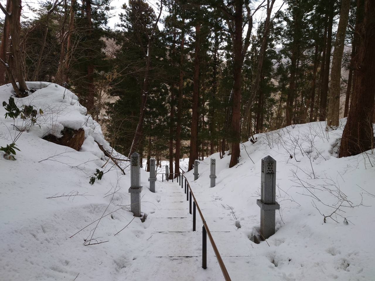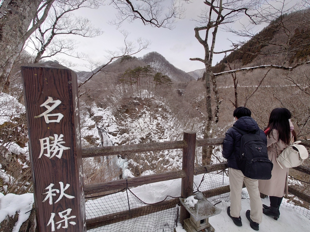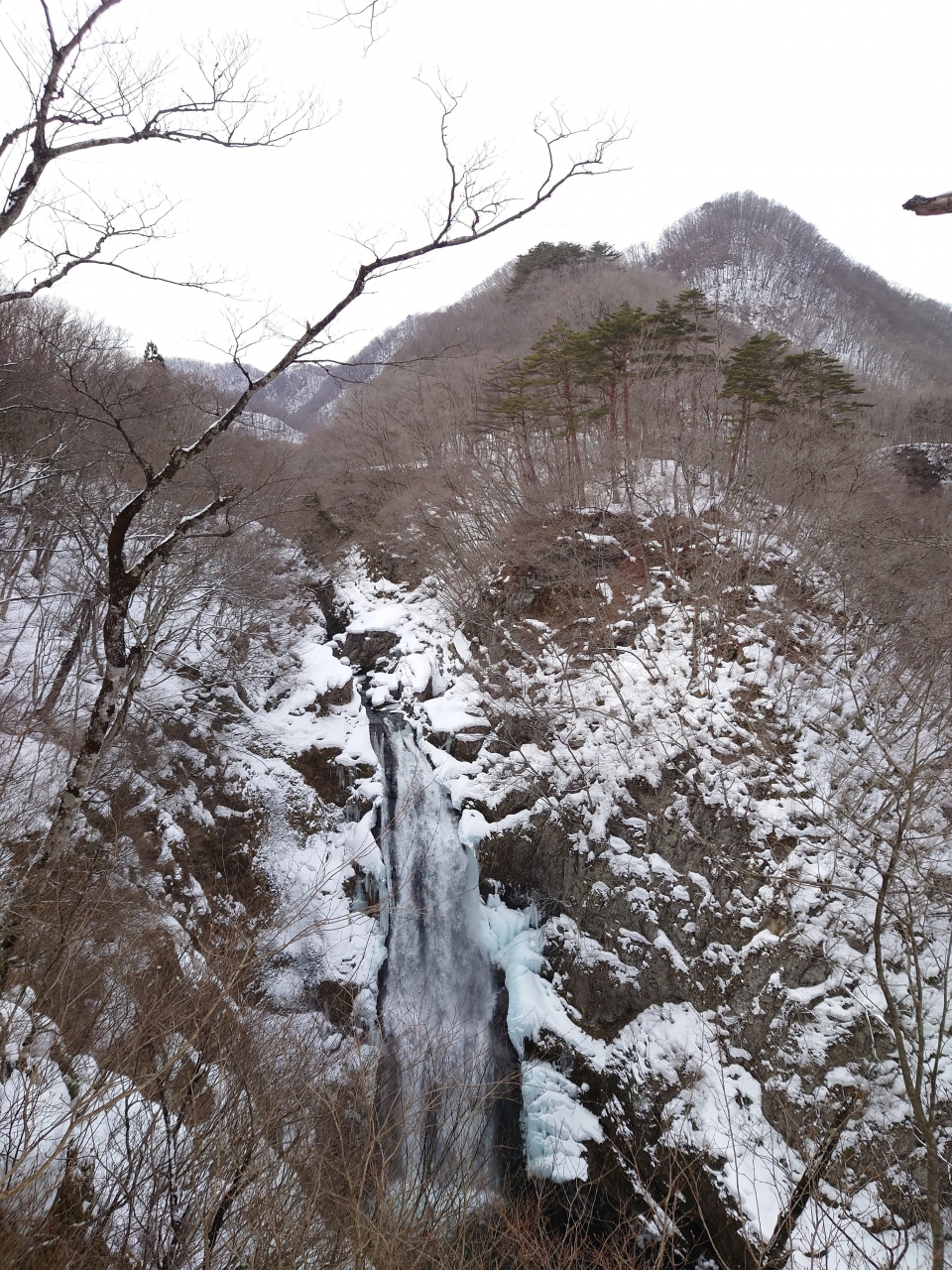 バスの終点にはレストランや観光案内所、秋保大滝の不動尊などがあり、秋保大滝へは不動尊の脇にある階段を降りて向かいます。訪問したのが冬ということもあり、一部箇所は凍っている場所もありやや危険。不動尊の近くにある観爆台は、一度に4人くらいしかまともに滝を見れない狭さなのに訪問する観光客の数は結構多いので、余りゆっくりできる雰囲気でないのがネック。滝本体自体は凍結もあるなどなかなか見応えがあるのですが。
