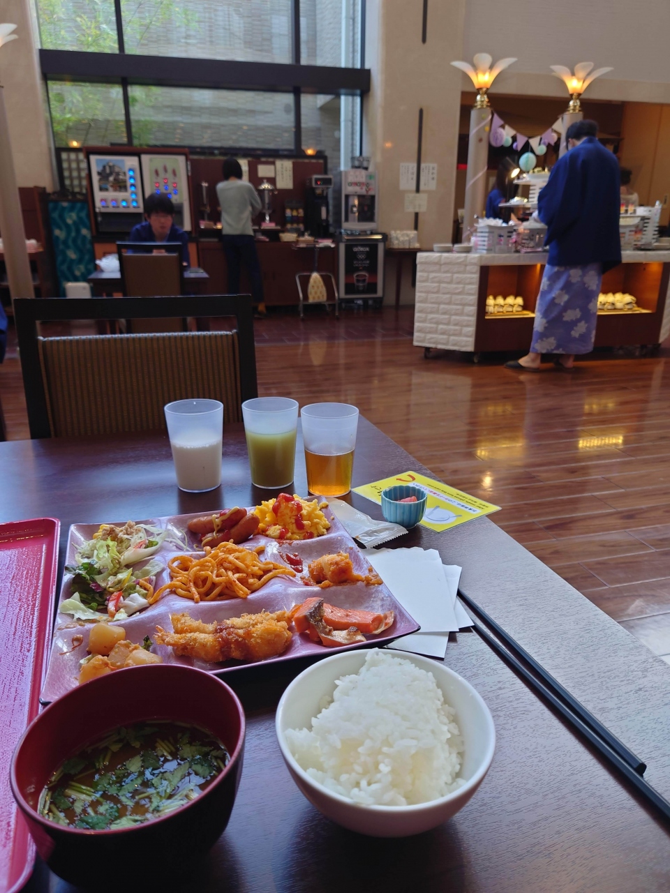 朝食バイキングは可もなく不可もなくと言ったレベルでしょうか。名物料理はかまぼこ等そこそこあったので、決して悪いということはないです。