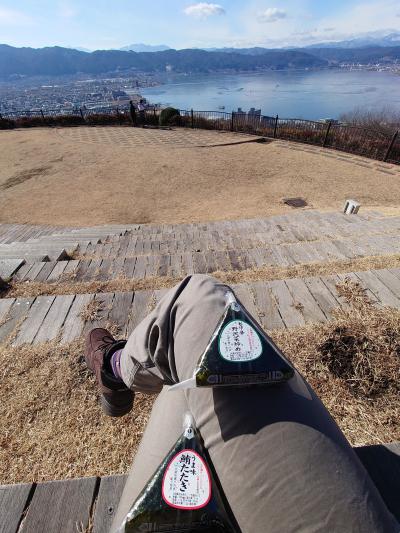 そんな急坂を登り切ると視界が開け、諏訪湖を一望できる公園に到着します。