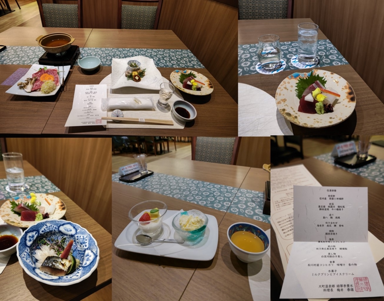 食事は1階の食堂で頂きました。朝夕共に若干量は少なめな感じですが、少なすぎて困るほどでもなく。夕食の黒毛和牛しゃぶやデザートは美味しかったですし、十分満足できるレベルでしょう。