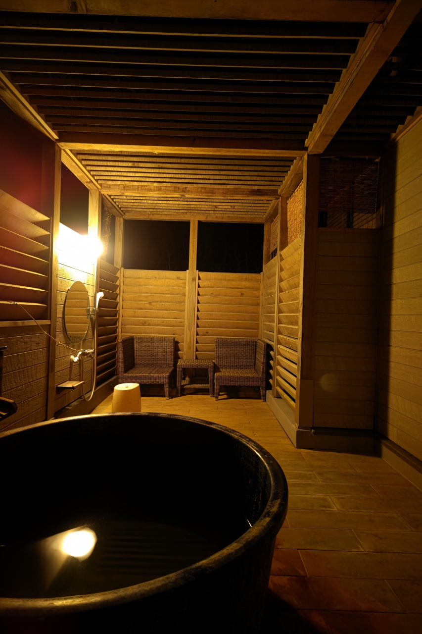 森の中の露天風呂付き客室は、「大人の隠れ家」と言った雰囲気。