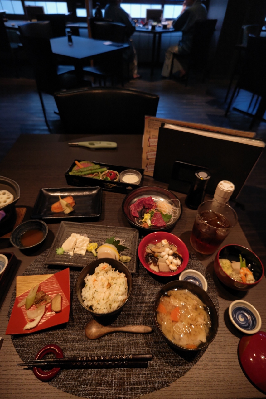 夕食はプランにより性格が大きく異なり、部屋で弁当を頂く「やど弁」の格安プランと旅館らしい食事が楽しめる「きらくセット」、そして夕食なしにして「1階のレストランで当日注文して食べる」(LO20:30)の3つ選択肢があります。