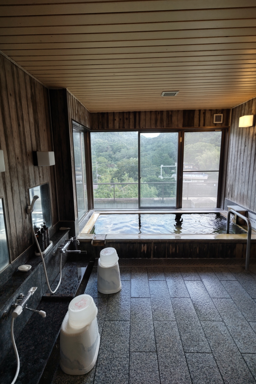 温泉は空いていればいつでも無料で入れる展望風呂2箇所(洗い場付きです)と、1階の大浴場。4階の展望風呂は開放的で雰囲気良し、部屋が4階だったこともあり近いのも良かったです。1階の大浴場はサウナ露天風呂併設でこじんまりとした雰囲気。温泉はクセが少なくなかなか気持ちいいお湯でした。