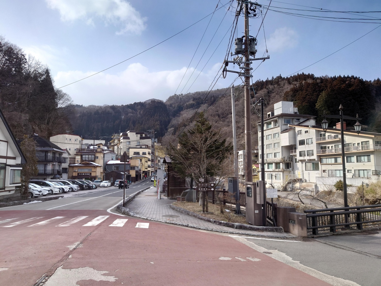そしてバス停の南側には滝に向かって続く散策路があり、そちらには足湯や吊り橋もあります。今回は生憎冬の訪問で両者共に閉鎖中で散策できず残念。もう少し気候の良い時に訪れた方が良いかもしれません。- 旅行時期