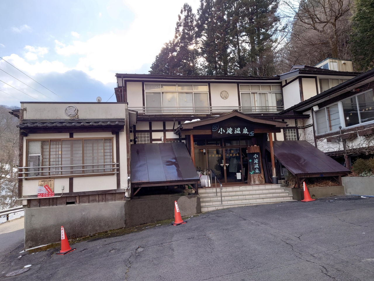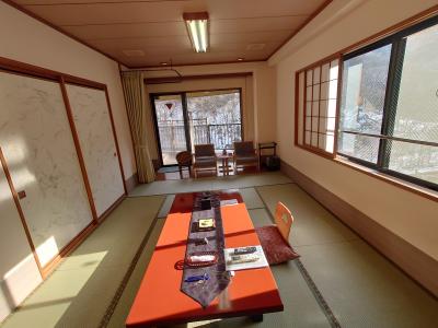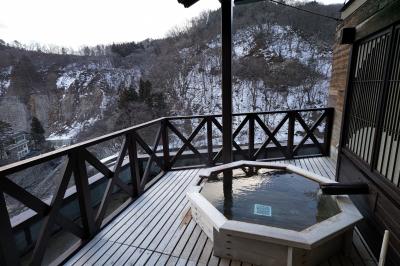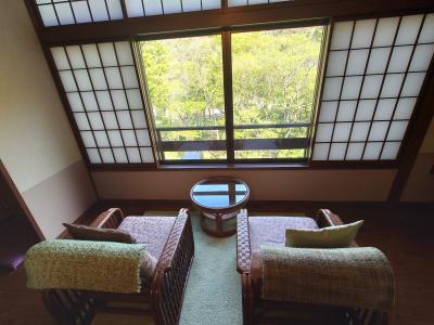 土湯温泉から少し奥に進んだ川沿いにある温泉宿で、鄙びた雰囲気の壱番館と部屋に露天風呂があり近代的な弍番館の2タイプがあります。ただ現在は弍番館の部屋のみ使用しているそうで、壱番館はチェックイン並びに食事の利用が主となっていました。