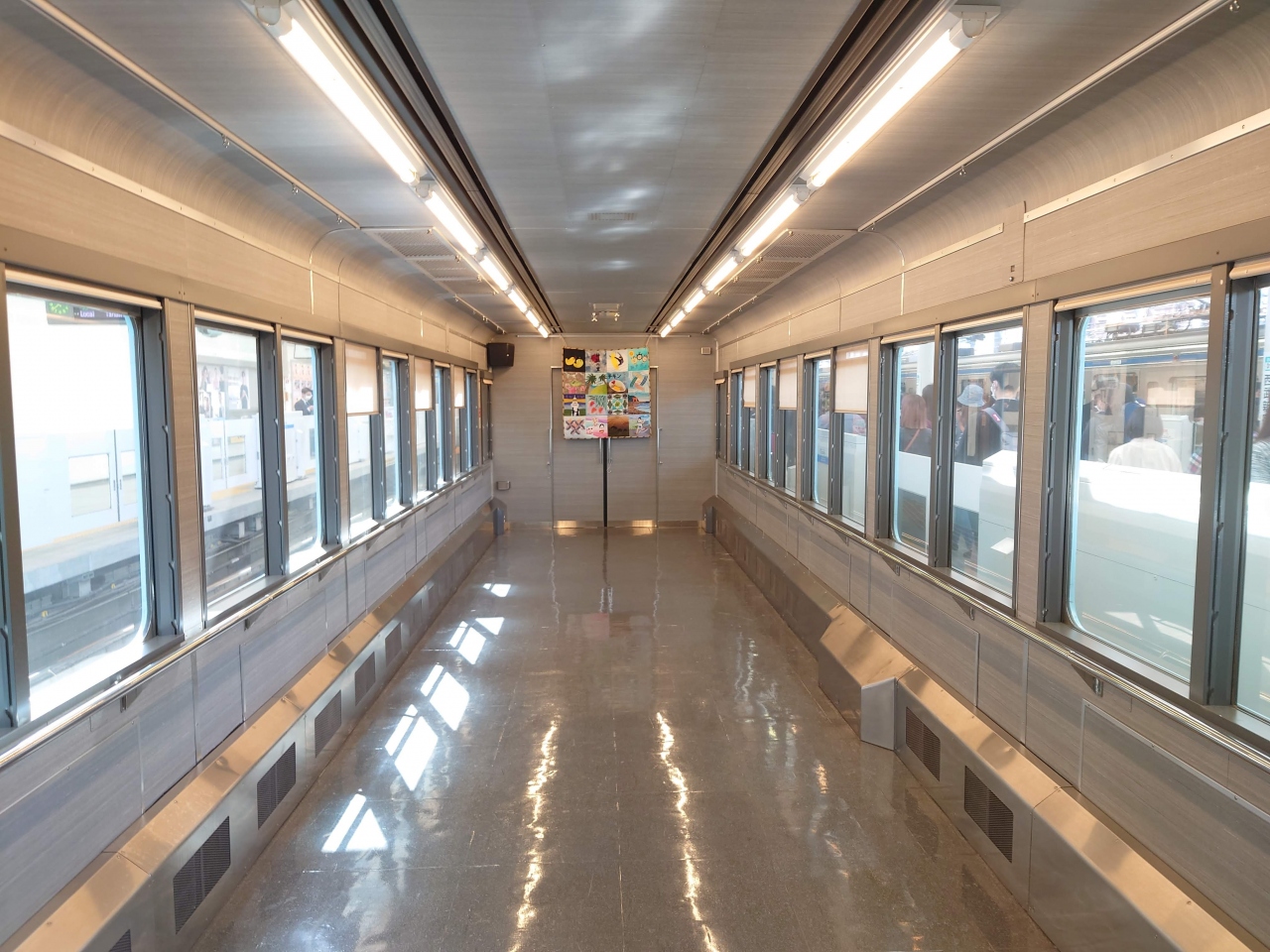 今回は西武新宿発のランチコースに、家族3人で参加。車内は木材を使った天井がおしゃれで、遮るものが少ない為明るく開放的な雰囲気で、座席下にはコンセントもありました。ただフリーWi-Fiがなかったのは盲点で、これは正直付けて欲しいです。
