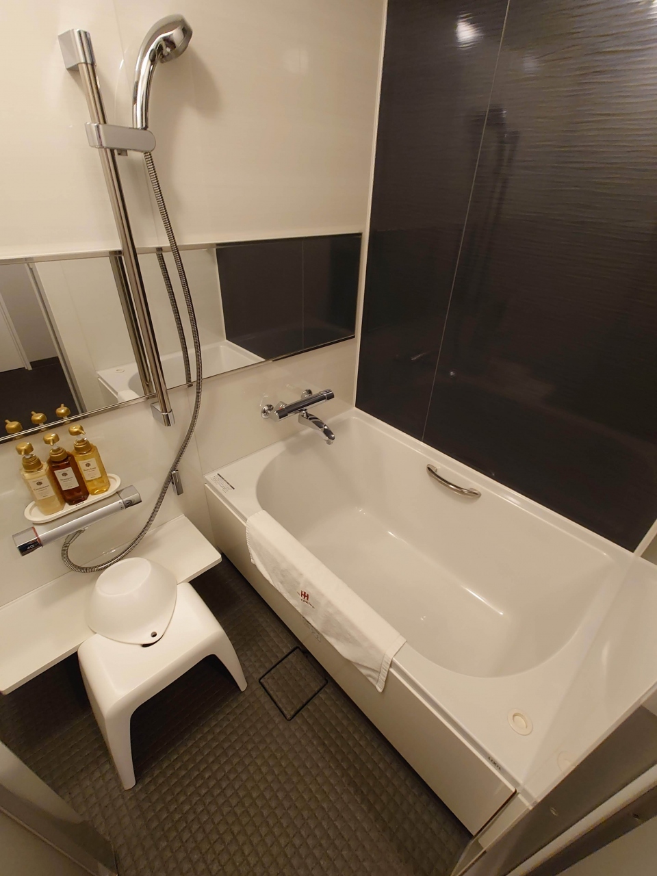 部屋はダブルルームを予約していたためベッドが広く、ゆっくり休めました。ユニットバスのバスタブも広めで、こちらも十分満足。