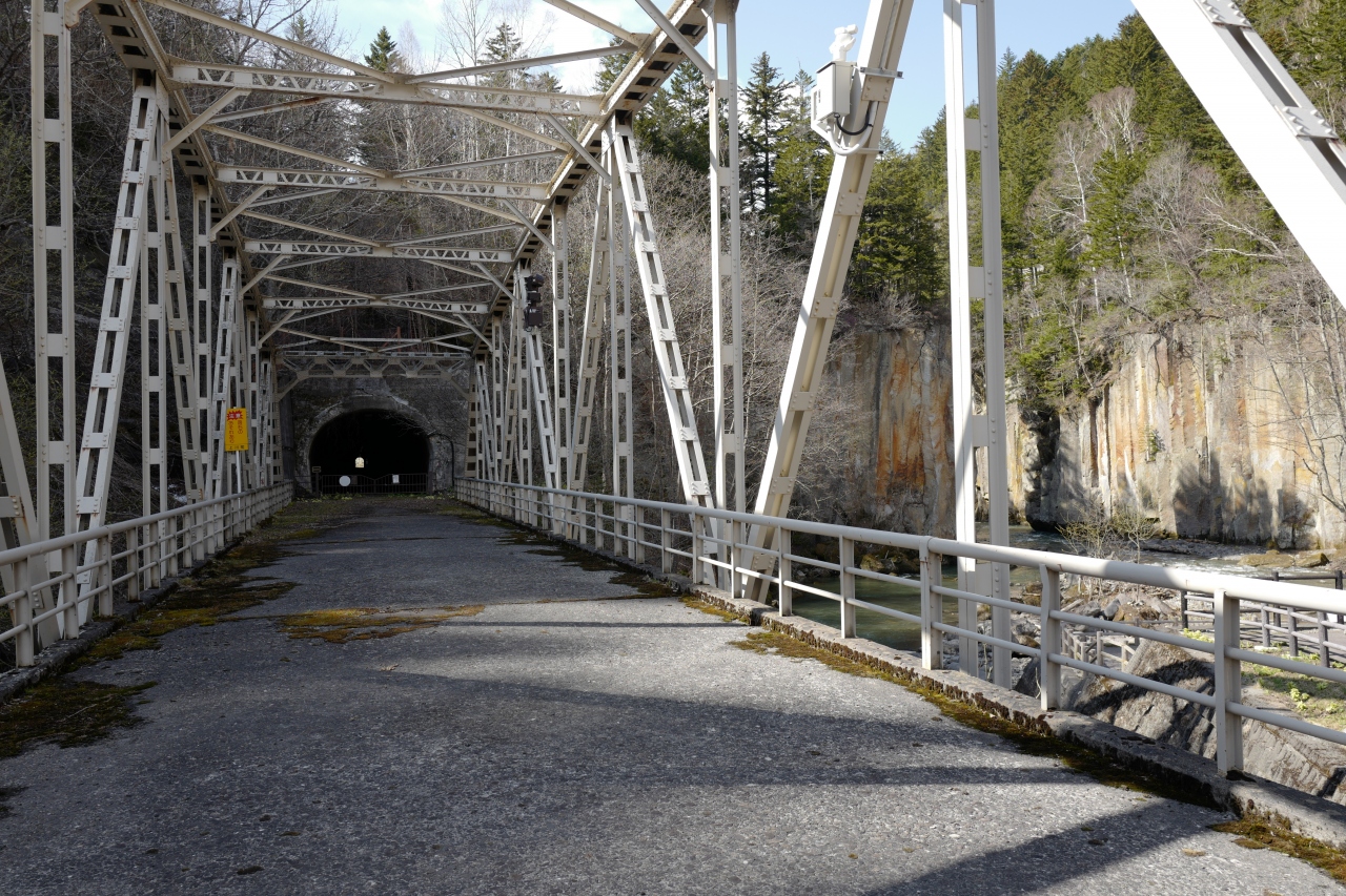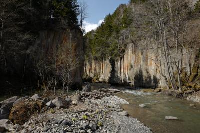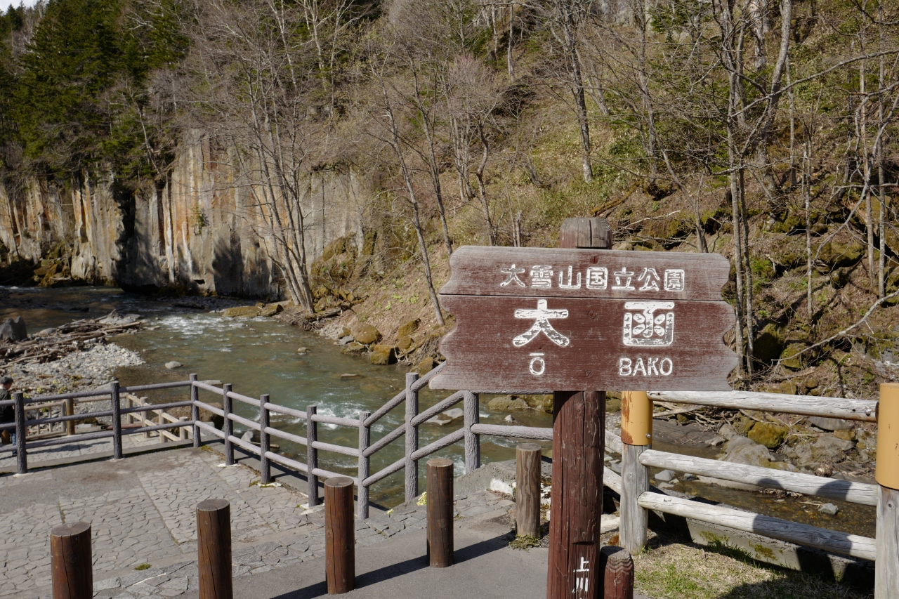 層雲峡の奥地、旧国道の橋手前にある景勝地。河原近くまで行くと迫力の景色が楽しめます。