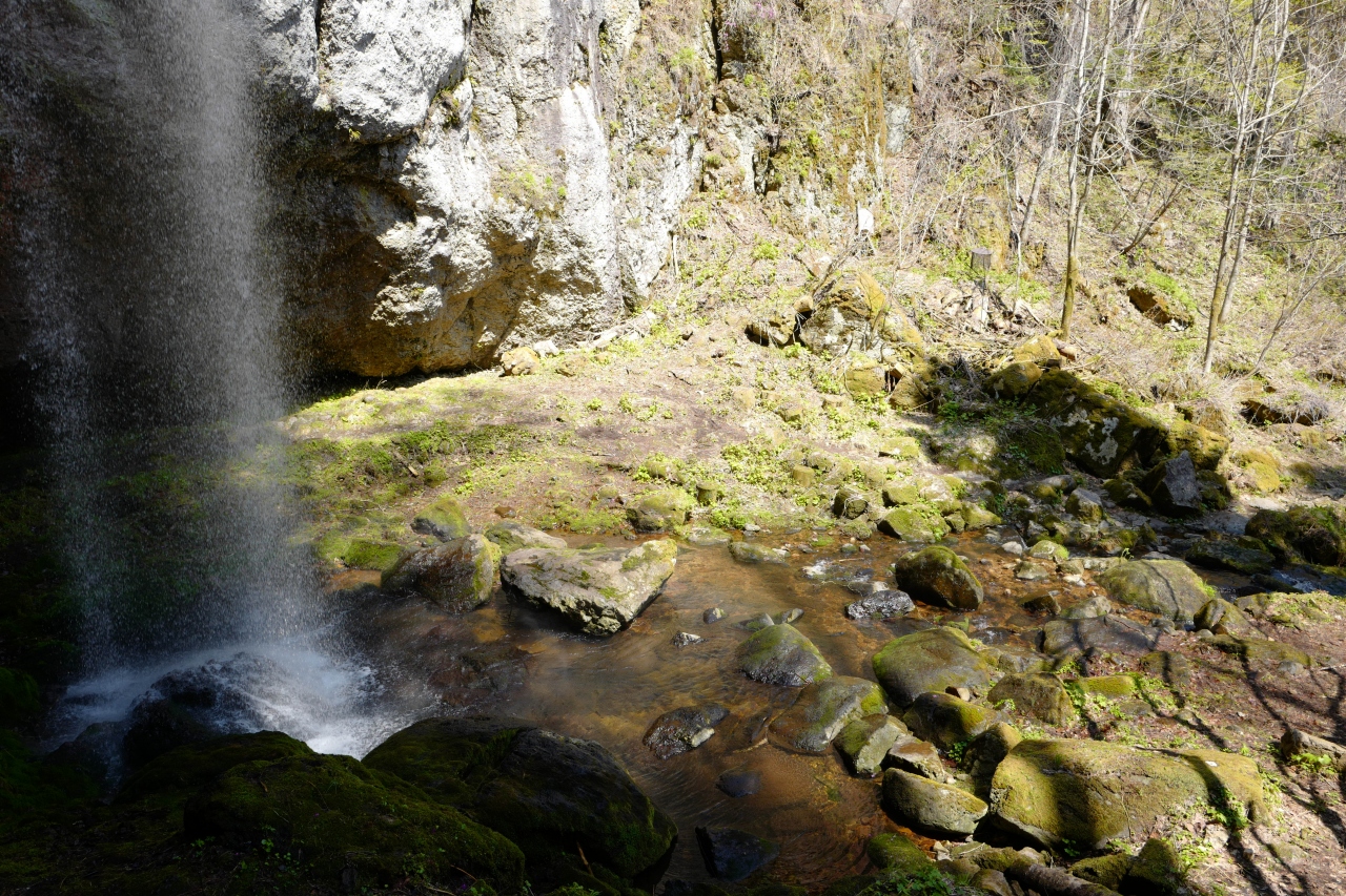 丸瀬布の奥にある、裏見もできる滝。駐車場からの距離は近いですが、自然豊かな場所なのでヒグマには気を付けましょう。