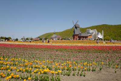国道沿いにあるチューリップ畑。チューリップ鑑賞は勿論、各種イベントなどもありファミリー向け。