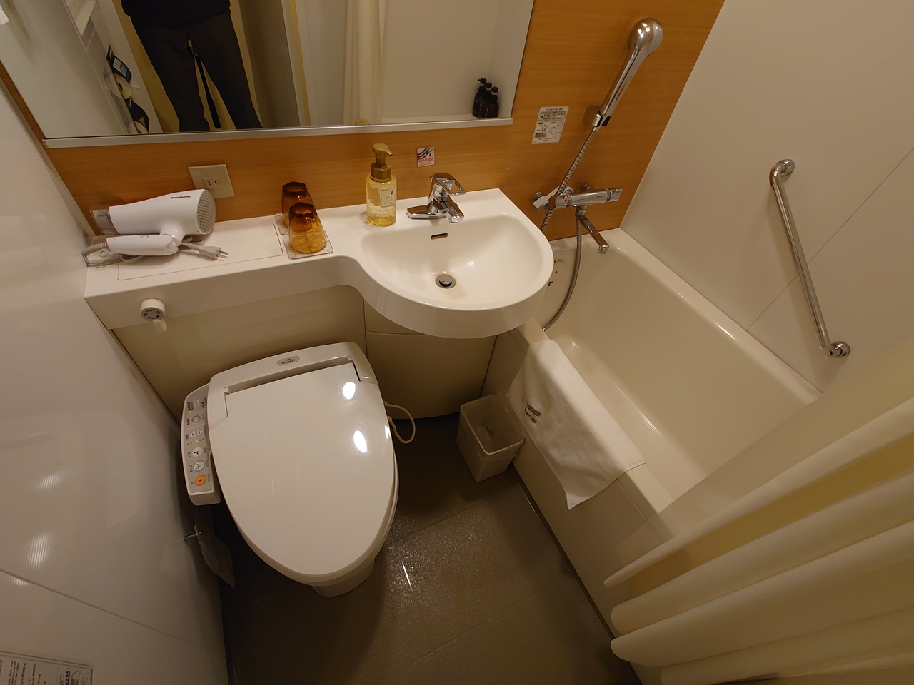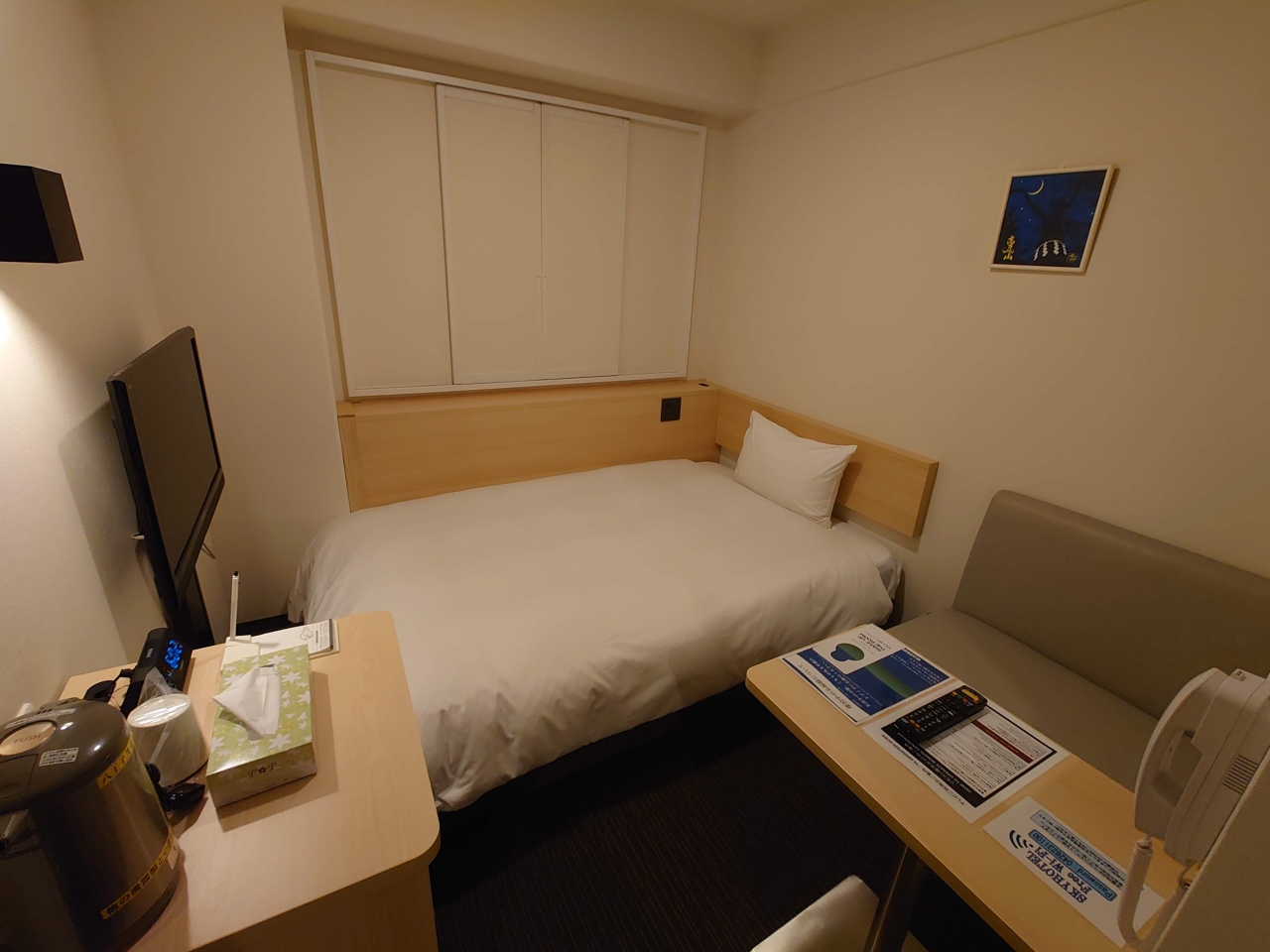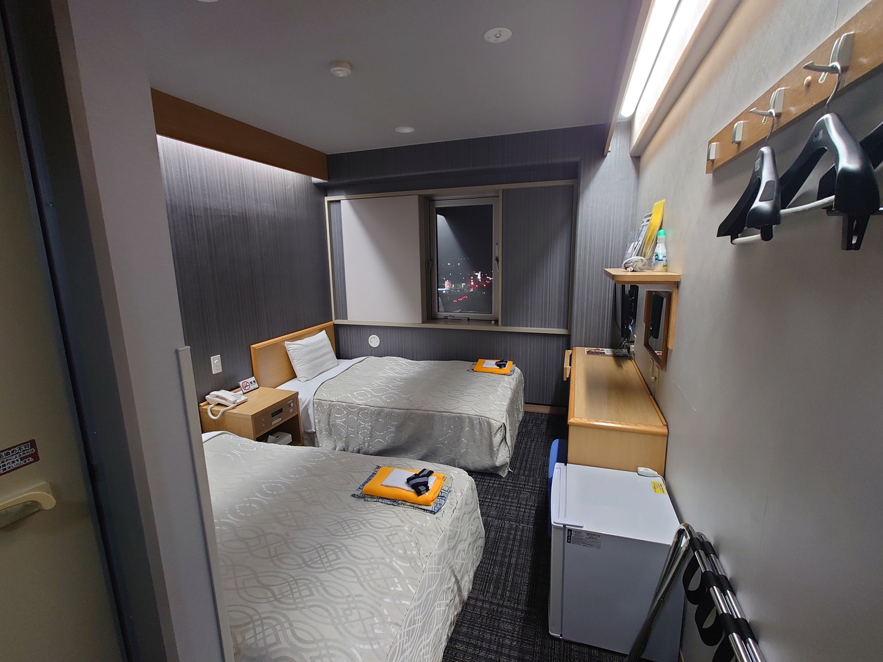 立川駅の西側、昭和記念公園にも歩いて行けるあたりにあるビジホです。青梅線の線路のすぐ近くにある関係で、一応二重窓になっているもののそれでも防音は不十分。結構走行音が響く上に、青梅線の本数は早朝深夜も多い為、これはマイナスポイント。
