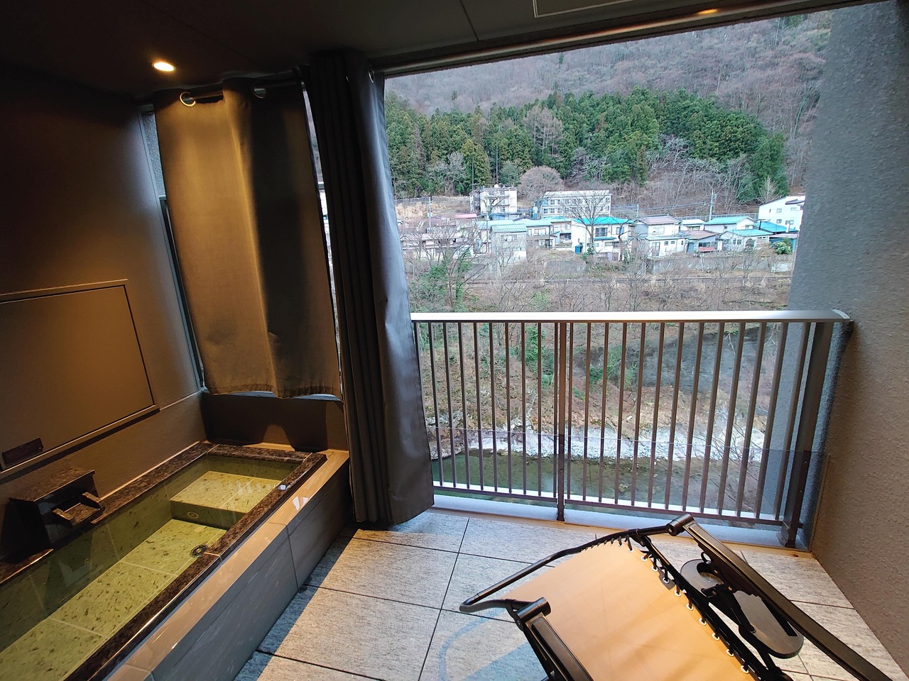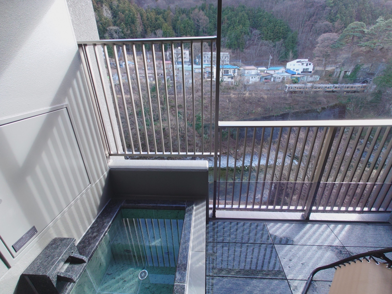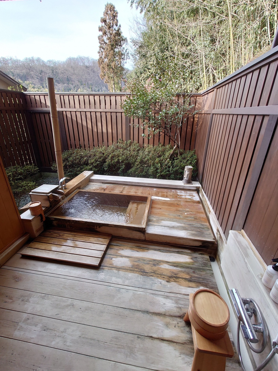 部屋の露天風呂は私の家の風呂より狭く、足が伸ばせない。