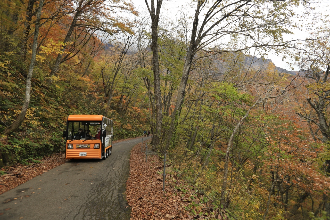 ちなみに歩くのが厳しい…と思う方向けに、ロープウェイ乗り場から一の倉沢まで向かう電気バスもあります。ただ車両は8人くらいしか乗れない上に、近年乗車する方が増えてる印象でなかなか気軽に乗るのは難しい状況です。なので元気な方は、なるべく歩きましょうね!