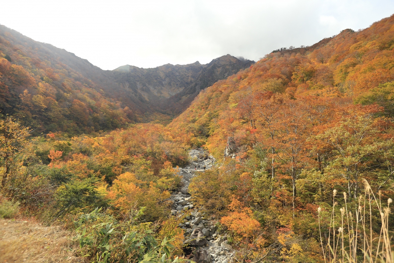 そしてたどり着く一の倉沢の大絶壁は、見た目のワイルドさに加えて夏は「残雪からのクーラー」。秋はオレンジ色に染まった紅葉など…