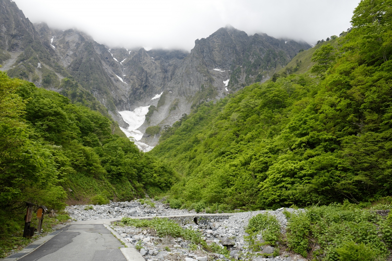 谷川岳ロープウェイ乗り場の奥から先の国道291号線は、現在関係車両以外の車乗り入れが禁止になっています。その為車の排ガスや待避などに気を取られることなく、ゆったりのんびり景色を楽しみながら歩けます。坂道は最初のつづら折り以外はほぼ皆無で、途中のマチガ沢などで休憩をとりながら、一の倉沢までゆっくり歩いても1時間半ちょっとあれば十分な距離です。