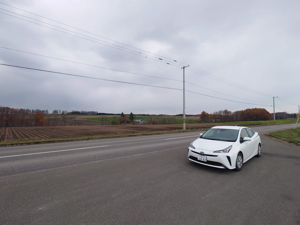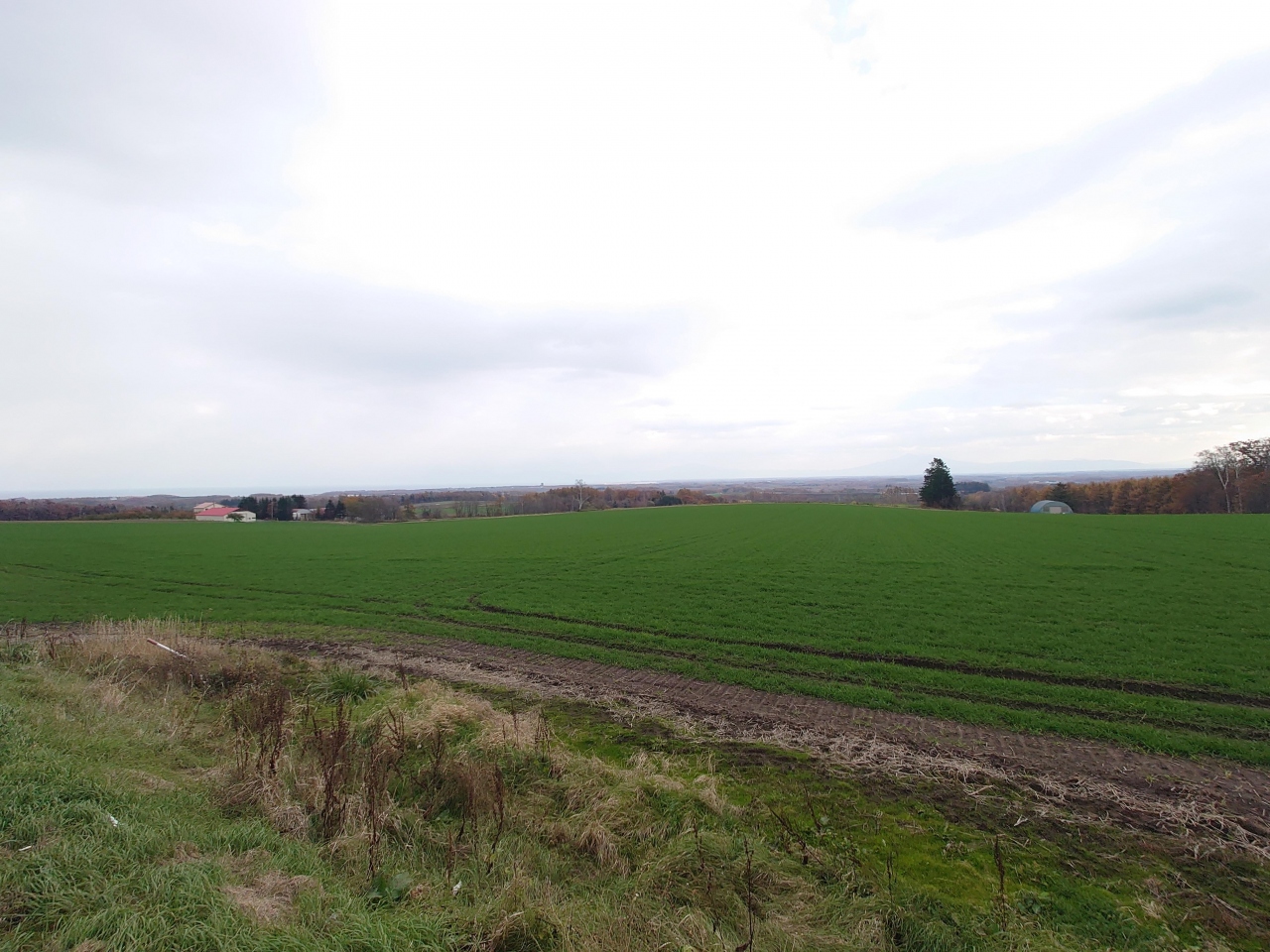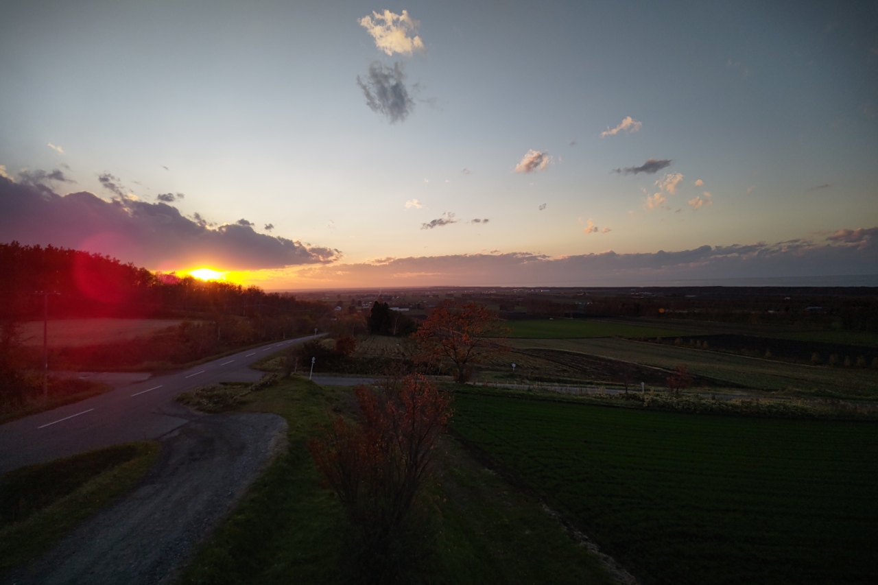 女満別空港からやや網走方面に走った、道道沿いにあるパーキングです。周囲は富良野美瑛の丘のような雰囲気になっていて、どこを走ってもとっても気持ちいい景色なのです。