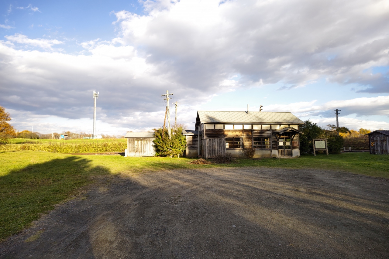 風蓮湖のやや西側、国道243号と244号線の分岐点近くに残る旧標津線の駅跡で、ホーム、木造駅舎などの遺構は現役当時のままの姿で残っています。