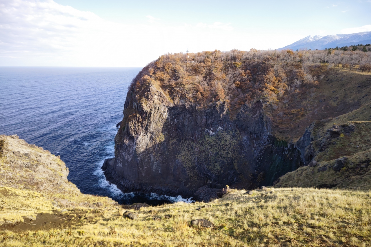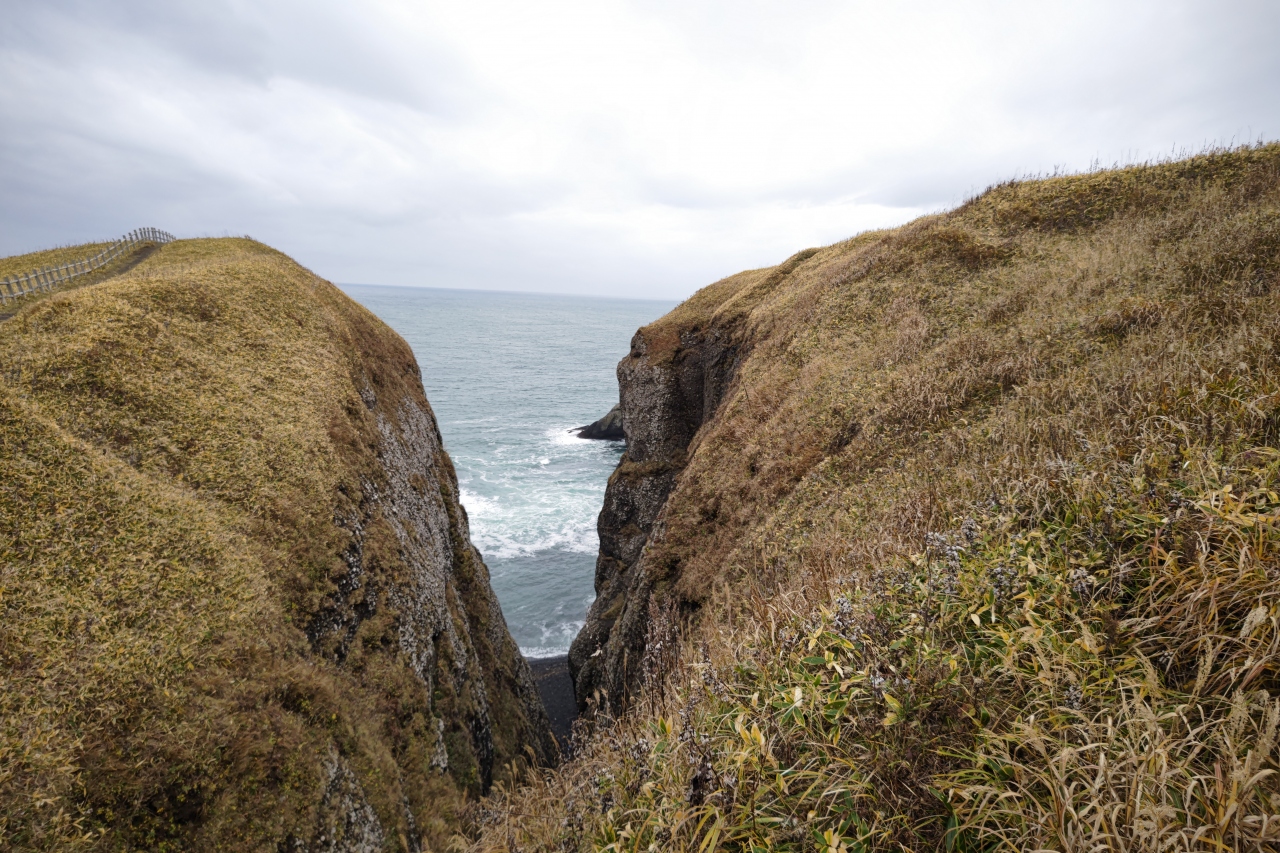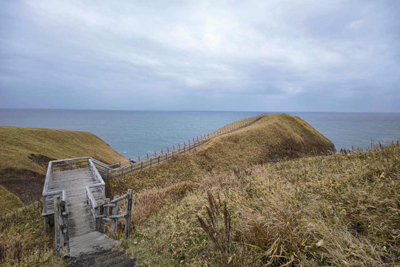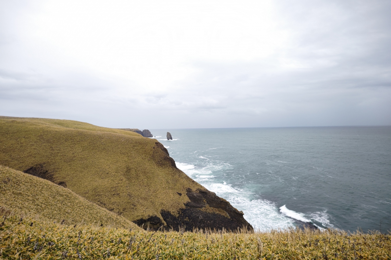 厚岸の町から道道を東に25分ほど走った場所にある岬です。駐車場から岬までは10分ほど歩くのですが、その道中の景色はまさに「最果ての地」に相応しいもの。人工物が一切ない海岸線と草原に、断崖に打ち付ける波など…ここまで来ないとなかなか味わえないであろう景色に、「わざわざ来てよかった」と思いました。