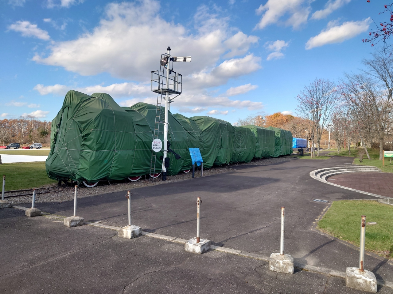 訪問時は11月だったため雪に備え保存車達はシートに覆われてしまっていましたが、腕木式信号機や駅名表などは綺麗にされており、大事にされてることが伝わって来ました。