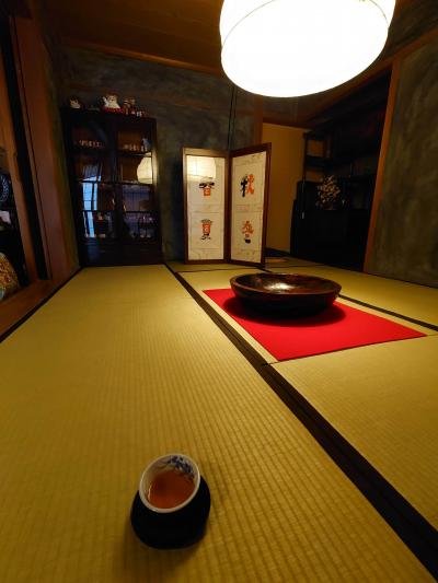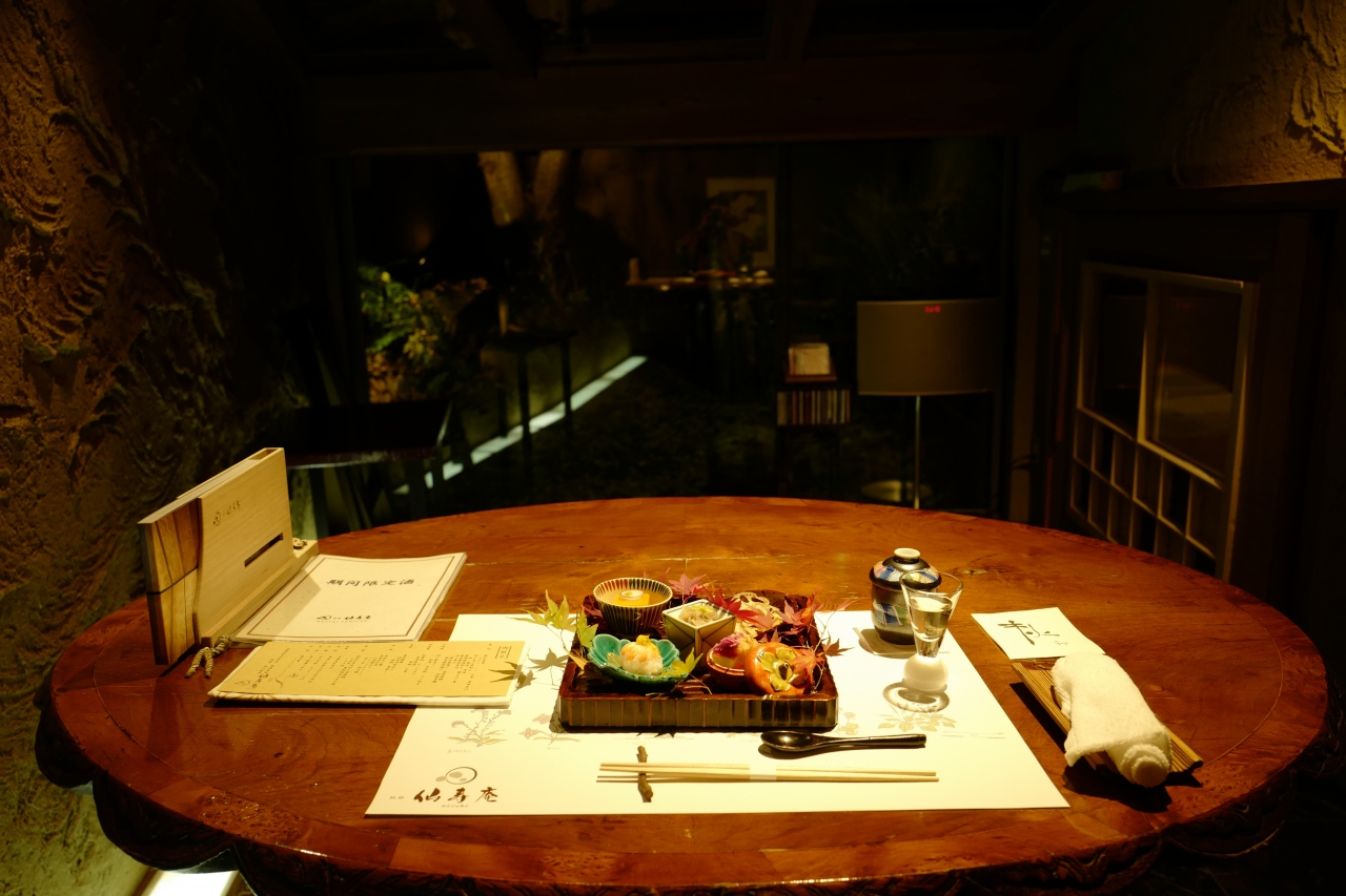 食事は入る時にかがむ必要があるという、これまた変わった個室に通されました。(このスタイルの個室は1室だけに見えたので、たまたま私が若かったから通されたのでしょう。)