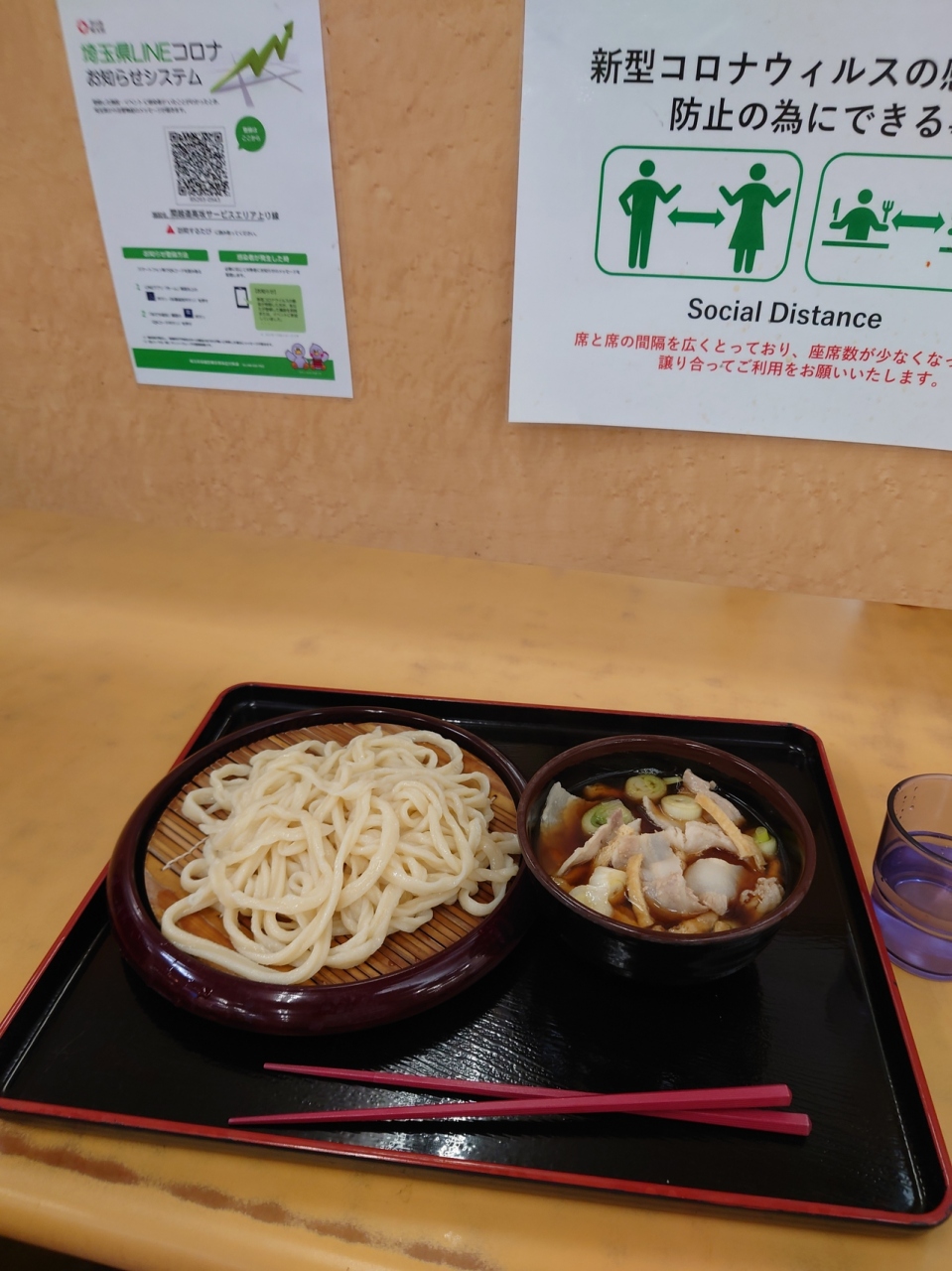 「SAのフードコートは提供時間が早い」というイメージがあったからこその選択でしたが、その期待を裏切らないスピードで料理が提供されており、注文した肉汁うどんはオーダー後僅か3~4分という速さで着弾。つゆや豚肉の味は良く、武蔵野うどんの麺もしっかりしていてクイック系メニューにしては美味しいうどんでした。20分の束の間の休憩時間でもまともな食事にありつくことができ、良かったです。- 旅行時期