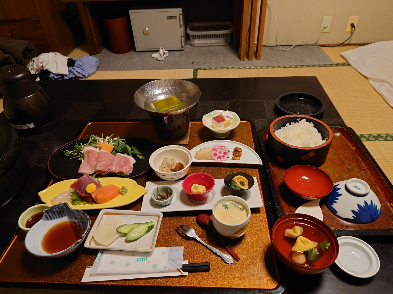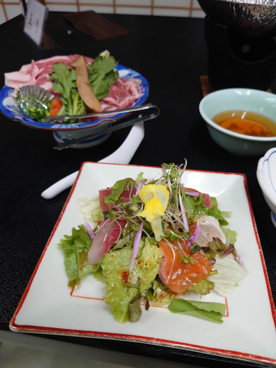 - 安い宿の部屋食だったので期待していませんでしたが、上州麦豚のしゃぶしゃぶが美味しく悪くなかったです。
