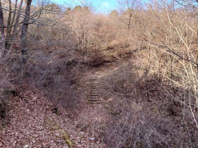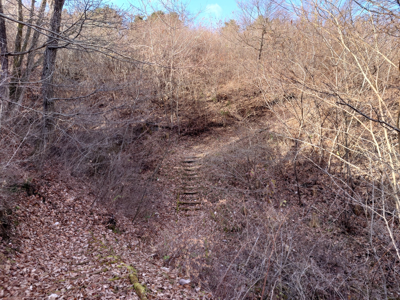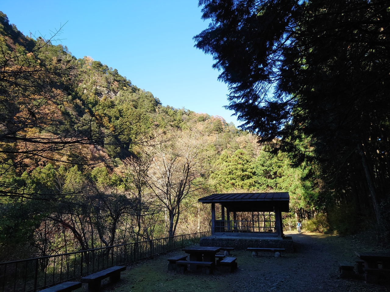 下から上がる歩道は裏山にあるような、荒れ気味の山道といった感じ。そこまで歩きにくくはありませんが、ほぼ直登なので勾配はキツめ。坂道を登りきると視界が開け、東屋のある休憩所の脇を通り抜けて駐車場脇の展望台に至ります。(公園という名前がありますが、遊具はないのでご注意を。)