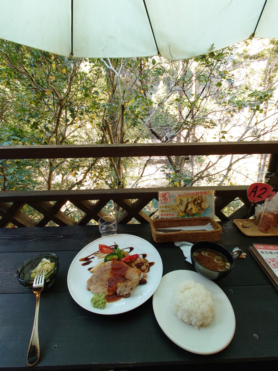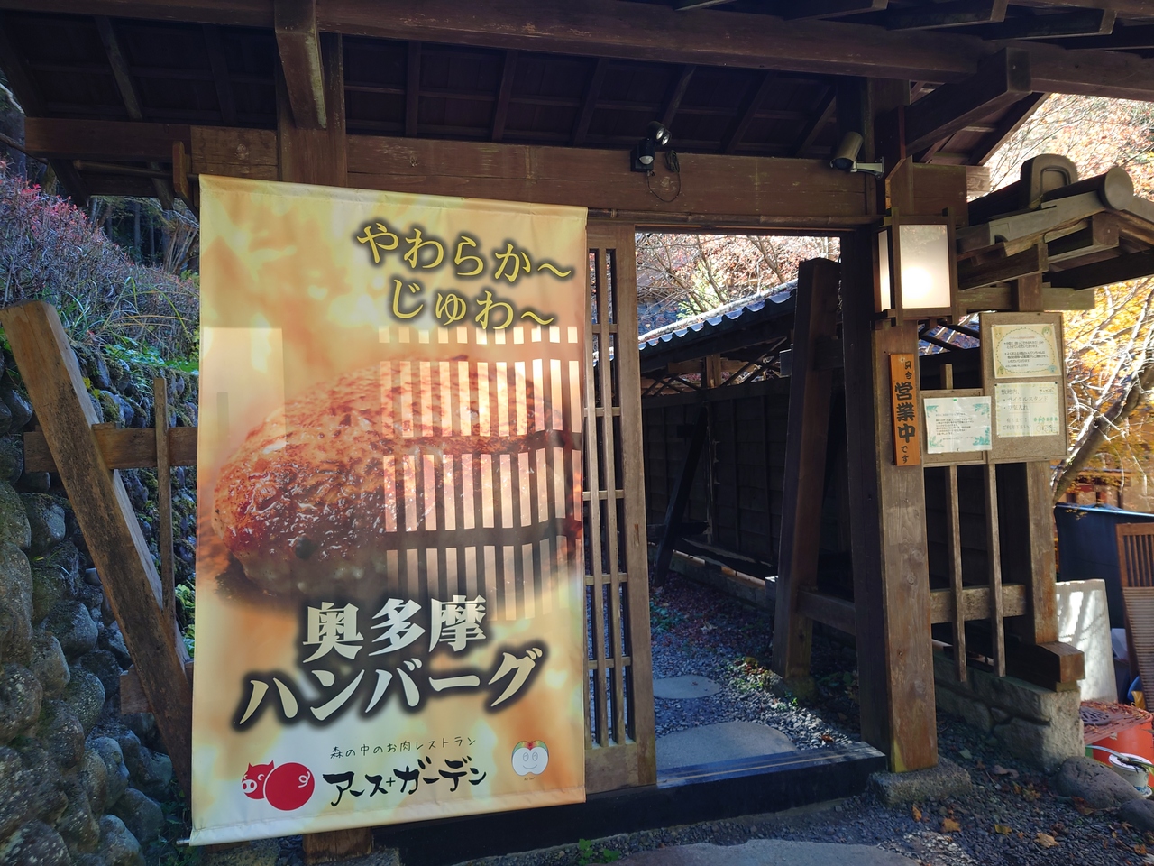 鳩ノ巣渓谷を歩きに行く前に、ランチを食べようと訪問。白丸駅から遊歩道の入口まで、坂道を下って10分ほどで到着。そこから橋を渡って右手に向かうと、こちらのレストラン「 アースガーデン」さんに至ります。