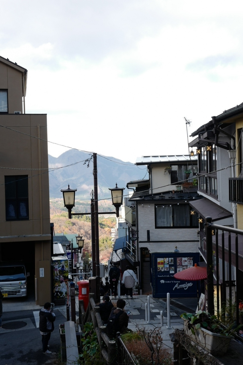 伊香保といったらここ。というほど有名な石段街。休日を中心にいつも混雑している印象で、訪問した11月末の日曜の14時過ぎでも「水沢うどん食べるのに60分待ち・人気の饅頭屋は混雑&売り切れ」なんていう状況でした。
