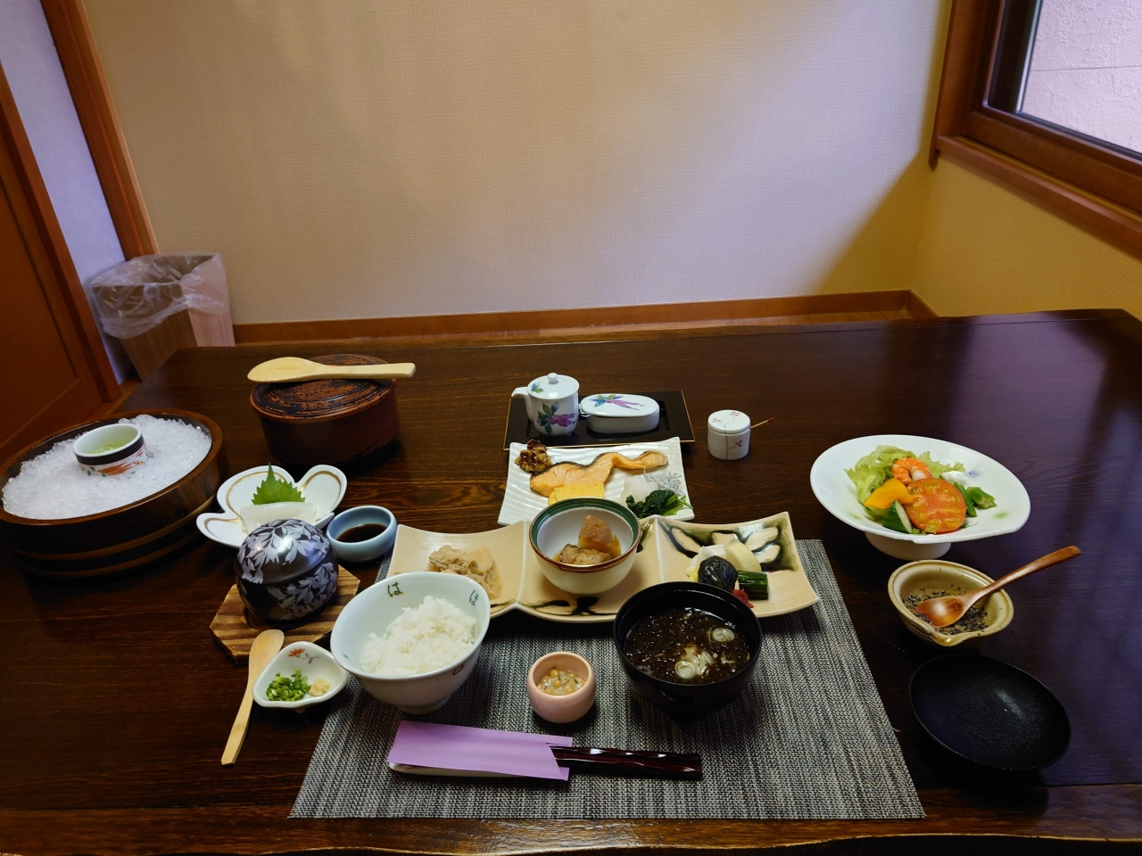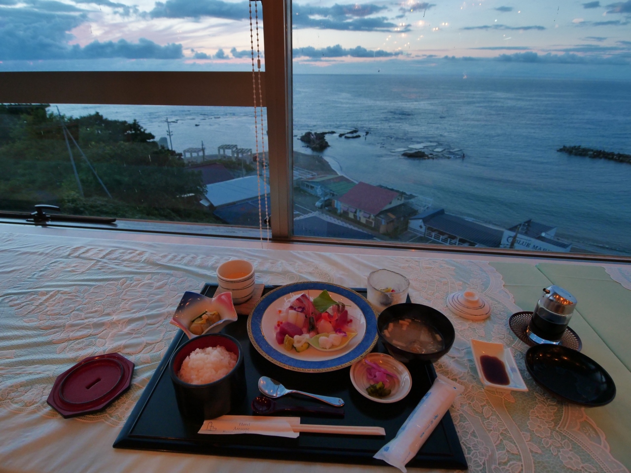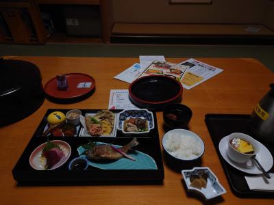 食事は旅程上、朝早く出ないといけなかった為素泊まりプランにしたのですが、夕食は当日フロントに申し出れば定食等を頂けるスタイルになってるので便利。海沿いの地域なのでお造り定食を頂きましたが美味しかったです。
