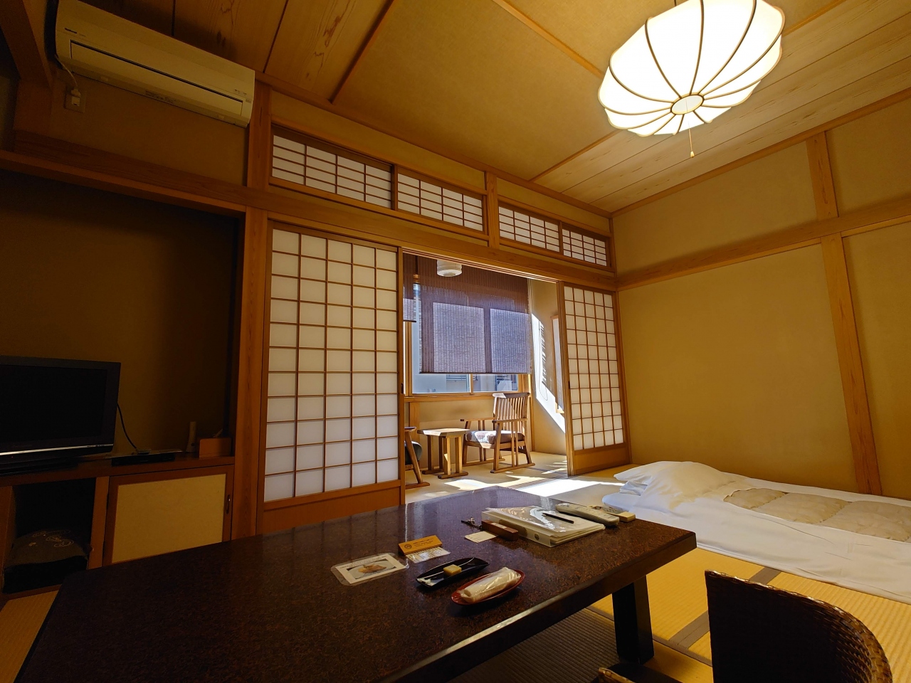 部屋は4階の露天風呂付きの和室で、一人でゆったり過ごすには丁度良い広さ。落ち着いた部屋の雰囲気も良いし、部屋についてる露天風呂も源泉掛け流しで良かったです。