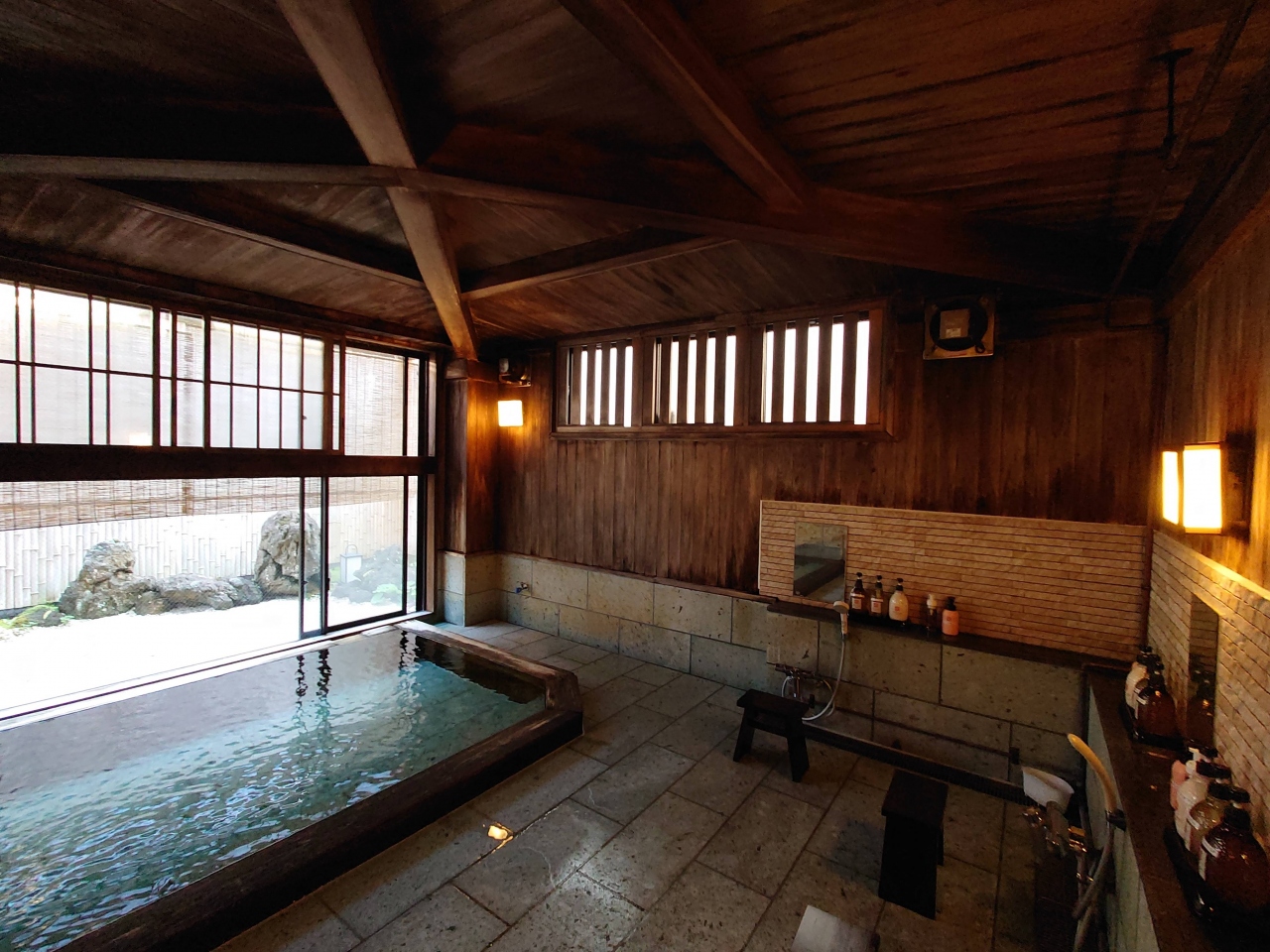 温泉は部屋以外にも男女入れ替え制の大浴場、空いてればいつでも入れる貸切風呂、そして別館「珠玉や」にある貸切風呂(予約は不要だが、九兵衛旅館の宿泊者は利用できる時間に制限あり)も利用可能で、貸切風呂が多いので気ままに湯めぐりを楽しめます。