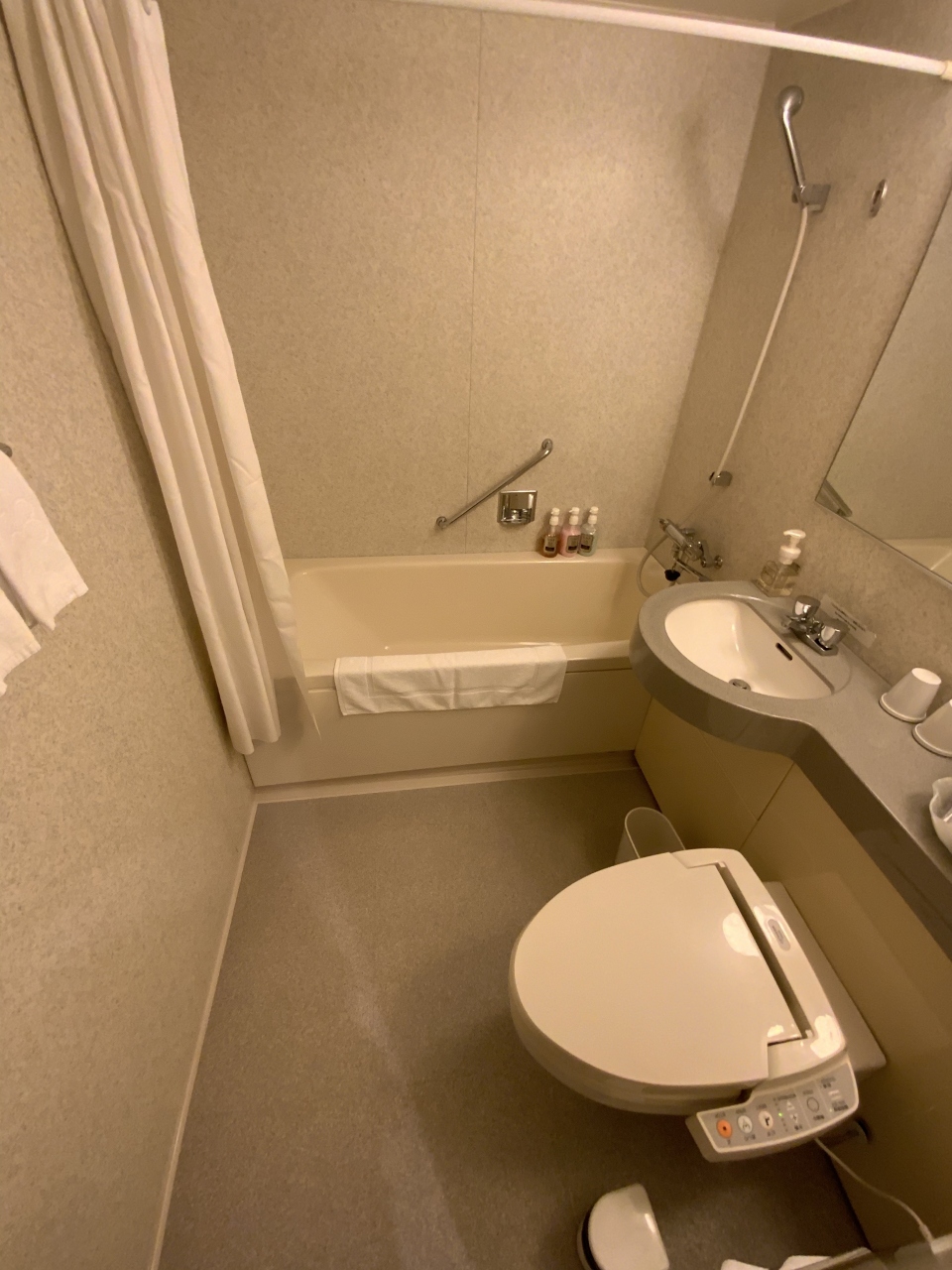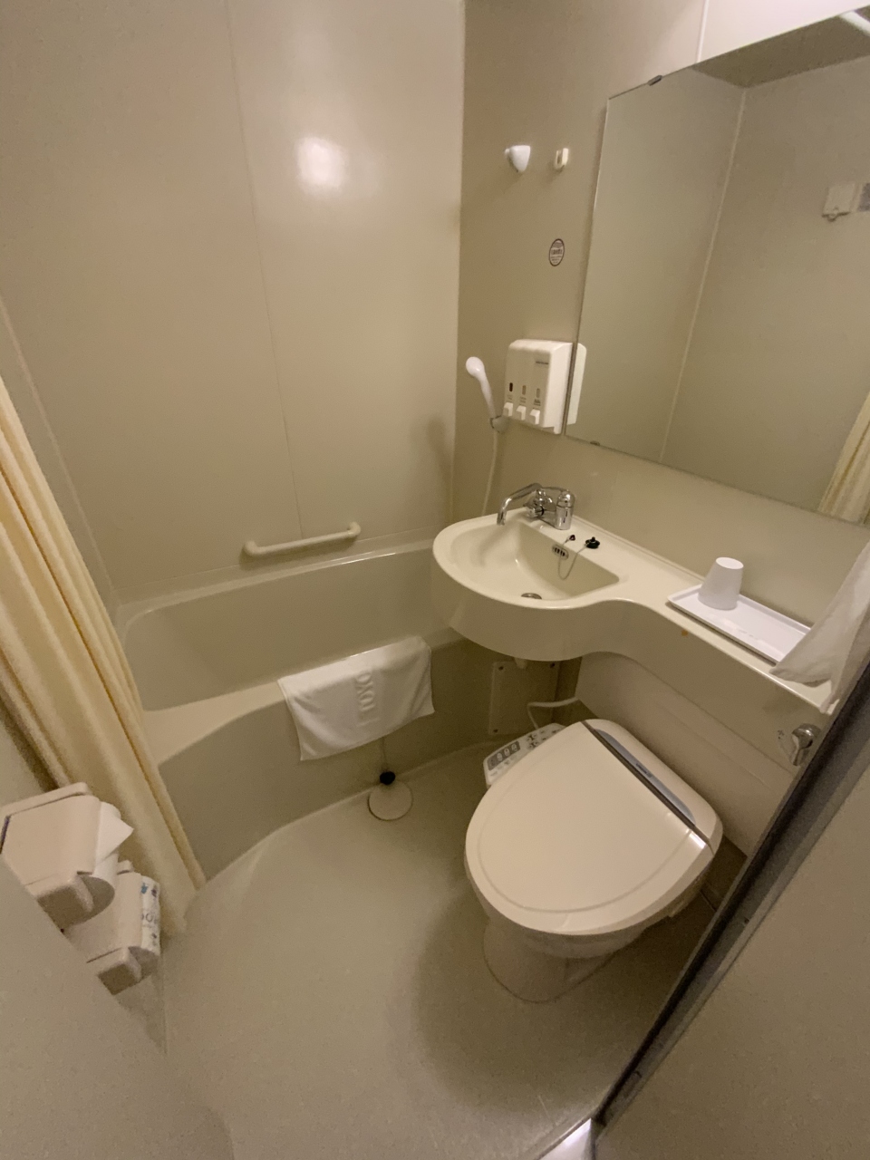 - ユニットバスは狭いですが、安い部屋なので仕方なし。