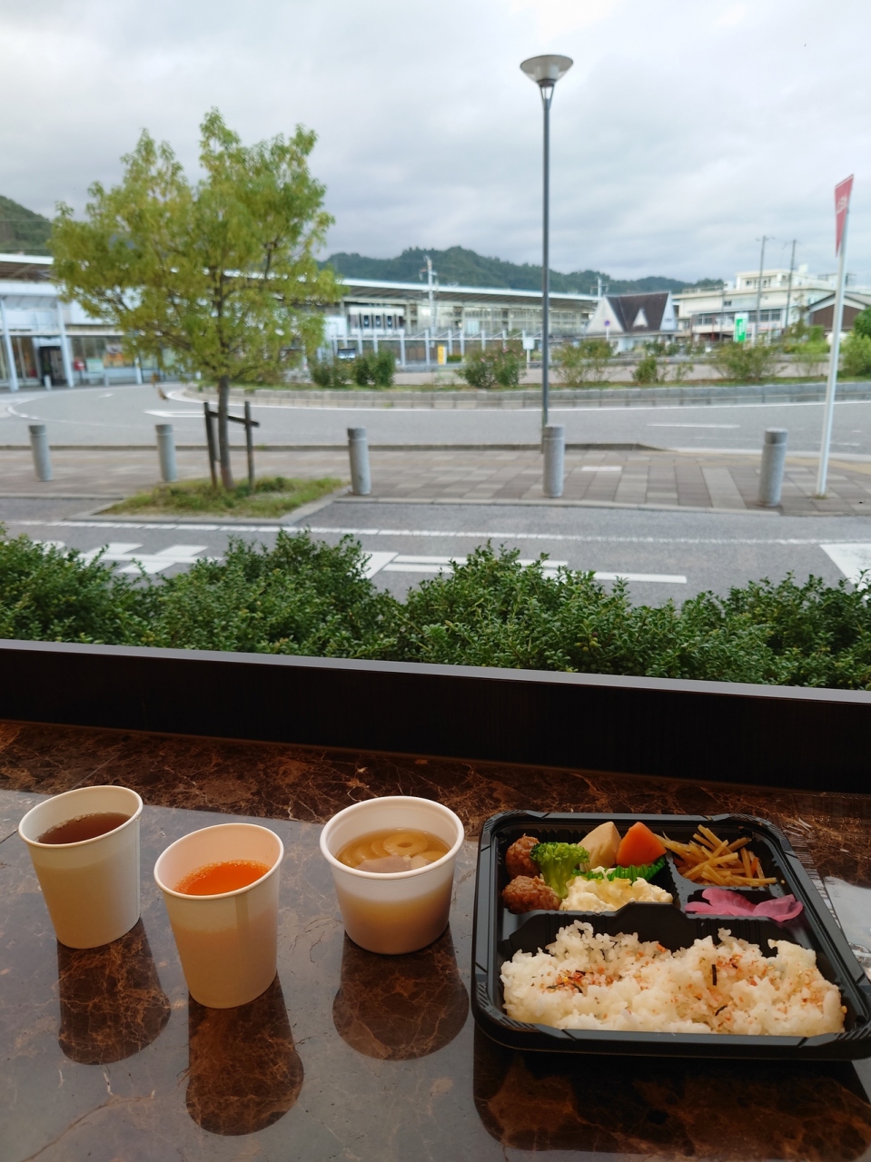 - ふりかけご飯と惣菜がついたお弁当が無料朝食として頂けます。