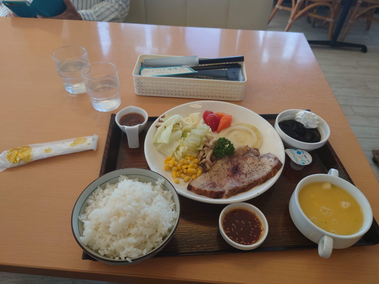 そんなコスモス畑と直売所に挟まれた場所にあるこちらのレストランは、名物の豚肉料理やハンバーグ、パンケーキやソフトクリームなどを頂くことができ、下手な道の駅レストランより充実しています。そんなことから1日でランチ、ティータイムと2度訪問しました。