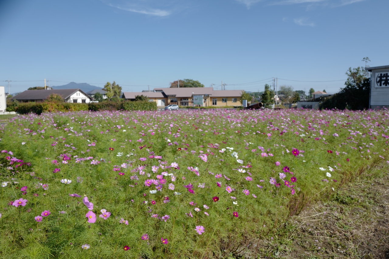 道の駅風の農産物直売所がある「やすらぎの里しもつま」の敷地にあるレストランで、レストランの南にはコスモス畑があって綺麗でした。