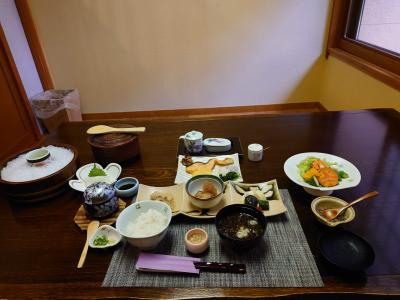 食事は一人にも拘らず、朝夕共に1階の個室に通して頂けたのでゆったり堪能できました。