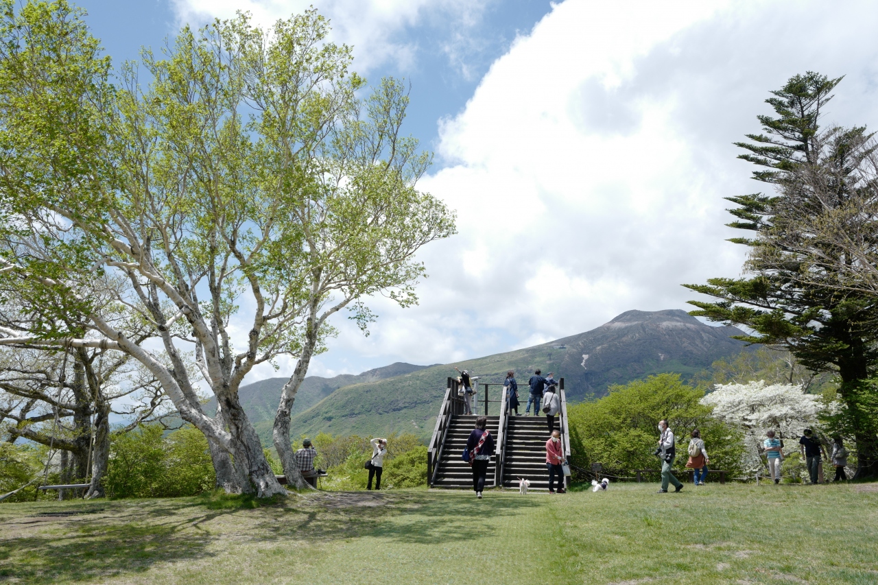 頂上駅周辺は、カジュアルなメニューが味わえるカフェ、茶臼岳とツツジが一緒に見える展望台そして、ツツジや新緑を見ながら散策できる、遊歩道があります。遊歩道を歩く場合は、茶臼展望台近くにある階段側から降りて行くと、急坂を登ることがないので楽。