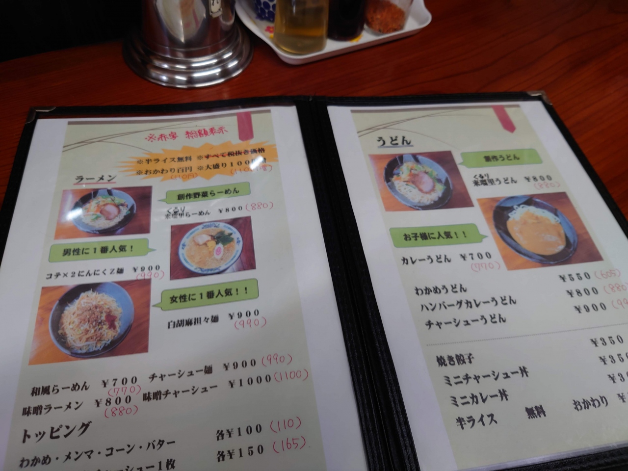上牧駅周辺は殆ど店がない状況でしたが、最近はコンビニが復活するなどパラパラ増えています。その中でも一番早く出来たのがこのラーメン屋来瑠里さん。営業時間も昼前~夜22時までと長く、便利です。ラーメンは創作のラーメンを売りにしているようで、肉厚チャーシューの入ったラーメンがとてもおいしいです。半ライスと卵が無料で食べられ、「TKG」にして頂くことも可能。又久々に入ったらうどんメニューがあったので「来瑠里うどん」も食べてみました。こちらはちゃんぽん風のスープが特徴なうどんで、ラーメンと同じ肉厚チャーシューが入ります。味はラーメンよりあっさりしているので、スッキリしたものが欲しい方はこちらが良いかも。
