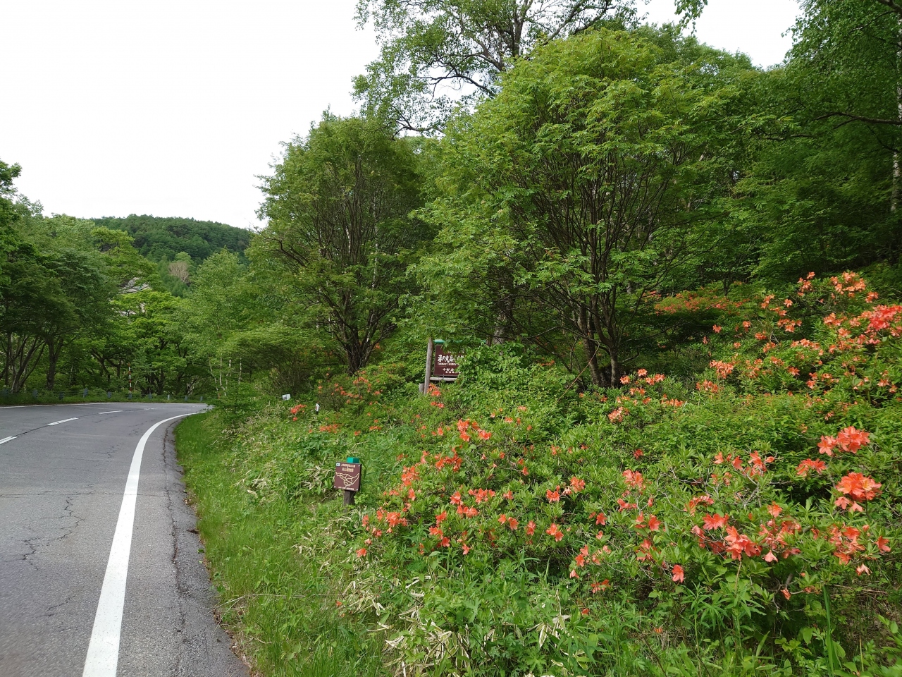山々を望む展望台もあるコースで、一周の所要時間は約40分程度。どこまでも続く新緑とツツジのオンパレードに癒されます。